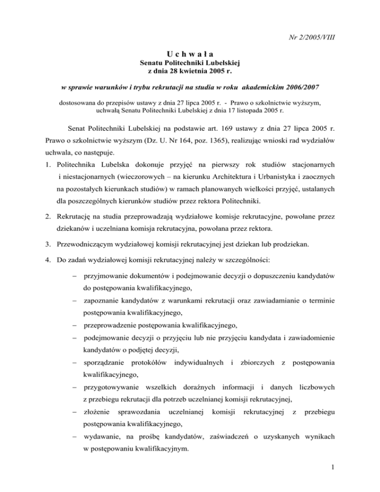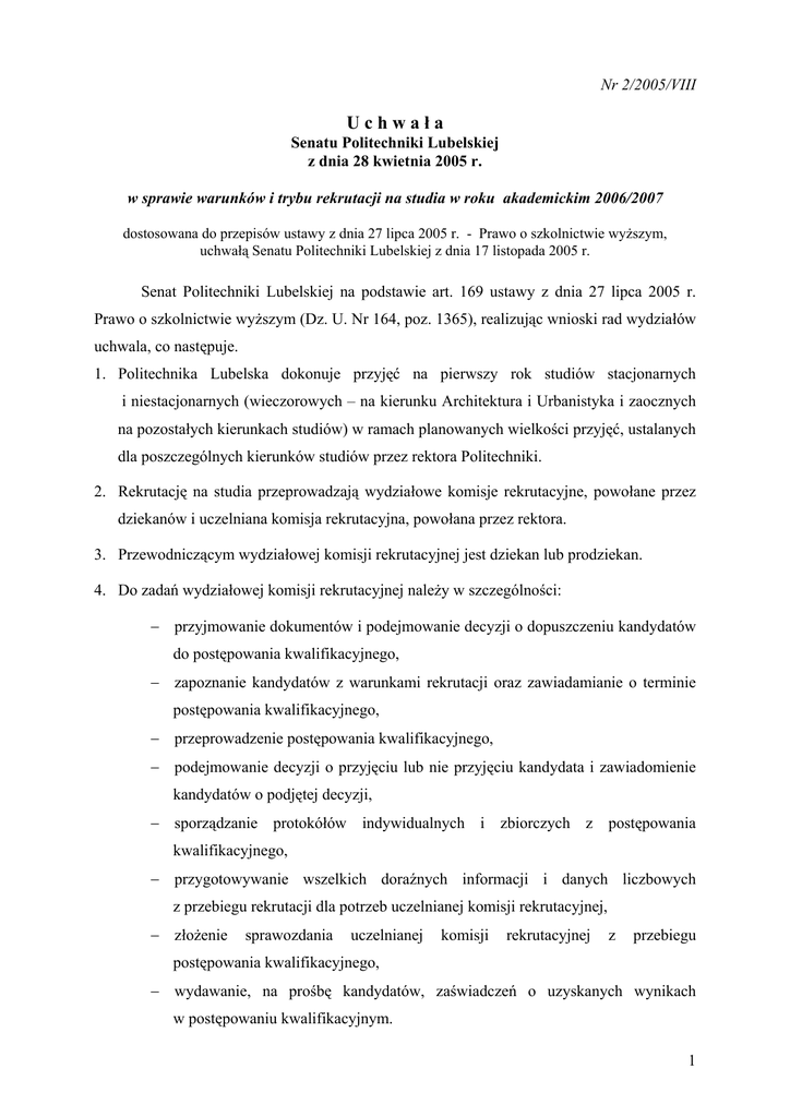 Uchwała Nr 2/2005/VIII - Politechnika Lubelska