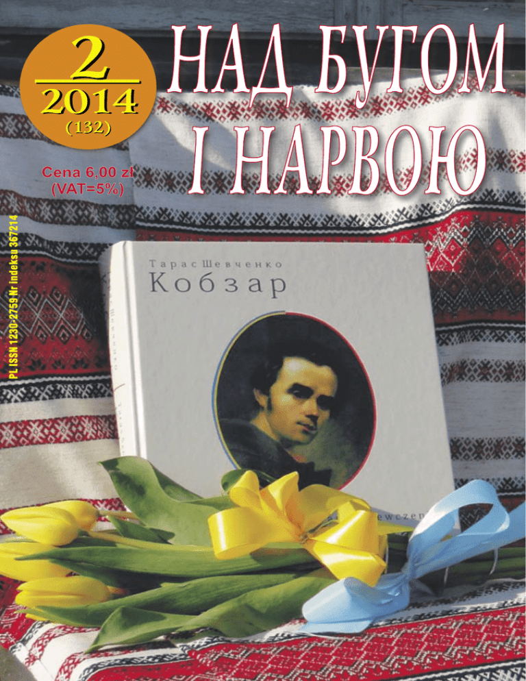 № 2 (132) Березень – Квітень 2014 Nr 2 (132) Mar zec – Kwiecień 2014 nadbuhom.pl e-mail: [email protected] ul. Ogrodowa 13, skr. poczt. 77, 17-100 Bielsk Podlaski, tel. (+48)502565547 J. Hawryluk, Komedia, a w istocie koszmar ........... 2 Л. Лабович, Березень на Підляшші – під знаком Шевченка .................. 3 Т. Шевченко, Сон ......................................................... 7 T. Szewczenko, Sen ....................................................... 7 L. Łabowicz, „Nasza historia nie jest ani lepsza, ani gorsza, ale to nasze dziedzictwo...” ......... 18 A. Jekaterynczuk, Wojna Rosji z Ukrainą: rosyjska propaganda a ukraińskie realia ..... 20 Л. Лабович, Другий номер «Українців у Фетерів» ................. 22 С. Басов, Г. Качановська, Етнографічна спадщина фотографа Степана Харламповича ......... 23 Л. Лабович, Дослідження весільної обрядовості Північного Підляшшя ............. 30 Ю. Гаврилюк, Данило Романович і його підляські та холмські справи ......... 32 A. Kolańczuk, Wypędzenia ludności ukraińskiej z Chełmszczyzny i Podlasia w XX wieku ........... 36 A. Kulgawczuk, Gwary ukraińskie Północnego Podlasia ........ 39 І. Киризюк, З циклу «Молитви подорожі» ................... 41 О. Ільїн, Західне Полісся в Українській Державі гетьмана Скоропадського .......... 42 Л. Лабович, З хроніки подій на Підляшші ......... 45 Українське Товариство: Відзначення в Люблині 200-річчя народження Тараса Шевченка ....... 48 Український часопис Підляшшя „Над Бугом і Нарвою” Ukraińskie pismo Podlasia „Nad Buhom i Narwoju” Видавець: Союз українців Підляшшя ul. Ogrodowa 13, 17-100 Bielsk Podlaski, tel/fax 85-730-25-23 www.zup.org.pl E-mail: [email protected] Wydawca: Związek Ukraińców Podlasia ul. Ogrodowa 13, 17-100 Bielsk Podlaski, tel/fax 85-730-25-23 www.zup.org.pl E-mail: [email protected] Зреалізовано завдяки дотації Міністра адміністрації і цифризації. Zrealizowano dzięki dotacji Ministra Administracji i Cyfryzacji. Редакція: Андрій Давидюк, Юрій Гаврилюк (головний редактор), Юстина Гапонюк, Іван Киризюк, Христина Костевич, Людмила Лабович, Кароліна Хмур. Співпрацівники редакції: Ігор Вереміюк, Микола Рощенко, Славомир Савчук, Леокадія Саєвич, Мирослав Степанюк, Єлизавета Томчук, Олена Чабан. Redakcja: Andrzej Dawidziuk, Justyna Haponiuk, Jerzy Hawryluk (redaktor naczelny), Jan Kiryziuk, Krystyna Kościewicz, Ludmiła Łabowicz, Karolina Chmur. Współpracownicy redakcji: Helena Czaban, Mikołaj Roszczenko, Leokadia Sajewicz, Sławomir Sawczuk, Mirosław Stepaniuk, Elżbieta Tomczuk, Ihor Weremijuk. Не всі думки висловлені на сторінках нашого часопису віддзеркалюють погляди редакції. Не замовлених матеріалів не повертаємо. Редакція залишає за собою право редагувати, скорочувати тексти та змінювати заголовки. За зміст поміщених реклам та оголошень редакція не відповідає. Nie wszystkie opinie wyrażone na łamach naszego czasopisma wyrażają poglądy redakcji. Materiałów nie zamówionych redakcja nie zwraca i zastrzega sobie prawo ich redagowania, skracania oraz zmiany tytułów. Redakcja nie ponosi odpowiedzialności za treść zamieszczonych reklam i ogłoszeń. Річна передплата на території Польщі коштує 50,00 зл. Річна передплата з-за кордону – рівновартість 35 доларів США (звичайною поштою) або 50 доларів США (летунською поштою). Банк. рахунок видавця: Związek Ukraińców Podlasia, Bank Pekao S.A., nr 41 1240 5253 1111 0000 5712 5402. Roczna prenumerata krajowa kosztuje 50.00 zł (w przypadku prenumeraty za okres krótszy ilość numerów należy pomnożyć przez 8.50 zł). Roczna prenumerata zagraniczna – równowartość 35 USD (poczta zwykła) lub 50 USD (poczta lotnicza). Rachunek bankowy: Związek Ukraińców Podlasia, Bank Pekao S.A., nr 41 1240 5253 1111 0000 5712 5402. Наша обкладинка Стор. І: У рамках вшанування пам’яті Тараса Шевченка коло міської ратуші в Більську відбулося публічне читання віршів Великого Кобзаря, що його українці Підляшшя зорганізували 9 березня, якраз у річницю 200-ліття від дня народження найвидатнішого українського поета. Поезію читали всі бажаючі, вибираючи не лише свої улюблені твори, але й ті, які найбільше пасували до актуальної ситуації. Стор. ІІ-IV: Весна, спочатку рання й хмарна, завжди в сонячну й цвітучу зміняється. Ці знімки були виконані весною 2014 року у околиці Вуорл