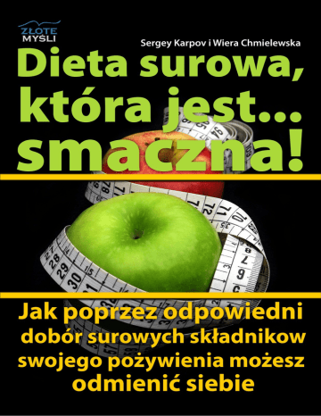 Ten ebook zawiera darmowy fragment publikacji "Dieta surowa, która jest... smaczna!" Darmowa publikacja dostarczona przez zdrowienazielono.pl Copyright by Złote Myśli & Sergey Karpov, rok 2008 Autor: Sergey Karpov Tytuł: Dieta surowa, która jest... smaczna! Data: 19.02.2013 Złote Myśli Sp. z o.o. ul. Toszecka 102 44-117 Gliwice www.zlotemysli.pl email: [email protected] Niniejsza publikacja może być kopiowana, oraz dowolnie rozprowadzana tylko i wyłącznie w formie dostarczonej przez Wydawcę. Zabronione są jakiekolwiek zmiany w zawartości publikacji bez pisemnej zgody Wydawcy. Zabrania się jej odsprzedaży, zgodnie z regulaminem Wydawnictwa Złote Myśli. Autor oraz Wydawnictwo Złote Myśli dołożyli wszelkich starań, by zawarte w tej książce informacje były kompletne i rzetelne. Nie biorą jednak żadnej odpowiedzialności ani za ich wykorzystanie, ani za związane z tym ewentualne naruszenie praw patentowych lub autorskich. Autor oraz Wydawnictwo Złote Myśli nie ponoszą również żadnej odpowiedzialności za ewentualne szkody wynikłe z wykorzystania informacji zawartych w książce. Wszelkie prawa zastrzeżone. All rights reserved. Powered by TCPDF (www.tcpdf.org) SPIS TREŚCI WSTĘP...................................................................................................................6 POZNAJEMY ACYDOZĘ.........................................................................................8 Zakwaszenie i neutralizacja .........................................................................................9 Tego lepiej nie jeść i nie pić.........................................................................................11 CENA ŻYCIA.........................................................................................................16 Co jest powodem przedwczesnego starzenia się?.......................................................16 Czym są wolne rodniki?..............................................................................................18 Antyoksydanty.............................................................................................................21 Czy witaminy i minerały są potrzebne?.......................................................................21 Dietę trzeba uzupełniać..........................................................................................22 Witamina E (tokoferol)..........................................................................................23 Witamina C (Kwas askorbinowy)..........................................................................25 Beta-karoten...........................................................................................................27 Nasz ratunek: E + C + beta-karoten.......................................................................27 Dlaczego są potrzebne witaminy grupy B..............................................................29 Witamina B12.........................................................................................................29 SEPTANPERIODYKA...........................................................................................32 CO PIJEMY?.........................................................................................................36 Trawienie opiera się na wodzie...................................................................................37 Skąd bierzemy wodę?.................................................................................................38 Soki.............................................................................................................................39 OWOCE SĄ NAJLEPSZYM JEDZENIEM...............................................................44 Agrest..........................................................................................................................44 Ananas ........................................................................................................................45 Arbuz...........................................................................................................................45 Awokado.....................................................................................................................46 Banan..........................................................................................................................46 Borówka .....................................................................................................................47 Brzoskwinia................................................................................................................48 Cytryna........................................................................................................................49 Czarna porzeczka........................................................................................................50 Czereśnia.....................................................................................................................51 Czerwona porzeczka....................................................................................................51 Daktyle.........................................................................................................................51 Figa..............................................................................................................................52 Granaty.......................................................................................................................53 Grejpfruty....................................................................................................................54 Gruszki........................................................................................................................56 Jabłka..........................................................................................................................56 Jeżyny..................................