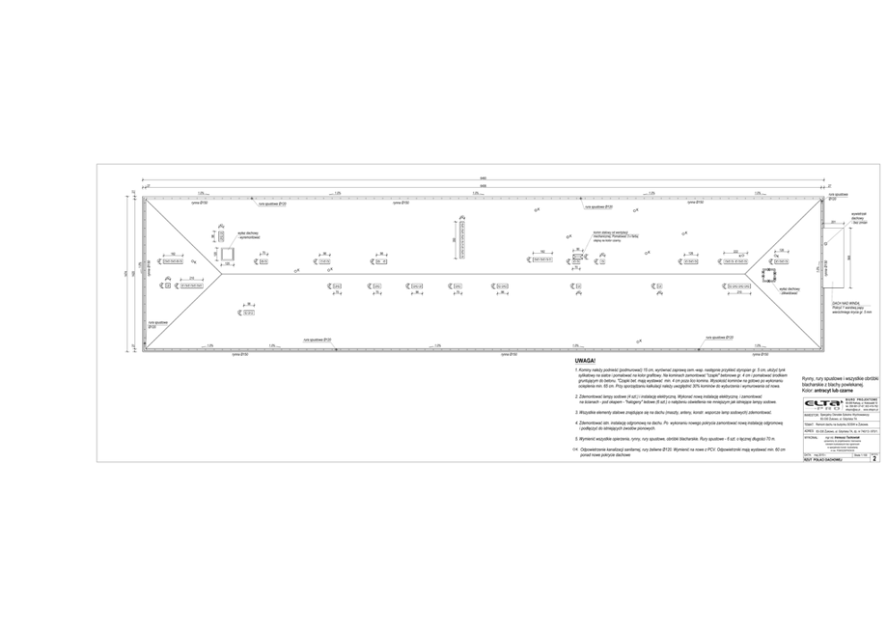 6460 6406 27 27 1.0% 1.0% 27 1.0% 1.0% K 1.0% rura spustowa K wywietrzak dachowy - bez zmian 42 201 42 komin stalowy od wentylacji 70 X 42 42 42 42 98 1.0% 42 X X 98 42 42 42 42 70 568 K 42 42 42 42 42 K X 42 42 126 222 126 210 42 1420 K 42 70 K K 42 42 42 120 42 42 42 K 90 182 98 98 X X 350 98 120 70 70 42 210 98 42 wierzchniego krycia gr. 5 mm rura spustowa K 27 1474 1.0% 182 K K 1.0% 1.0% 1.0% 1.0% 1.0% UWAGA! Ryn blacharskie z blachy powlekanej. Kolor: antracyt lub czarne tel. 058 681-37-67, 603 416-782 [email protected] , www.eltapro.pl INWESTOR: TEMAT: ADRES: Ireneusz Tackowiak uprawniony do projektowania i kierowania K nr ew. POM/0229/PWOK/05 ponad nowe pokrycie dachowe DATA: maj 2015 r. Skala 1:100 NR RYS. 2
