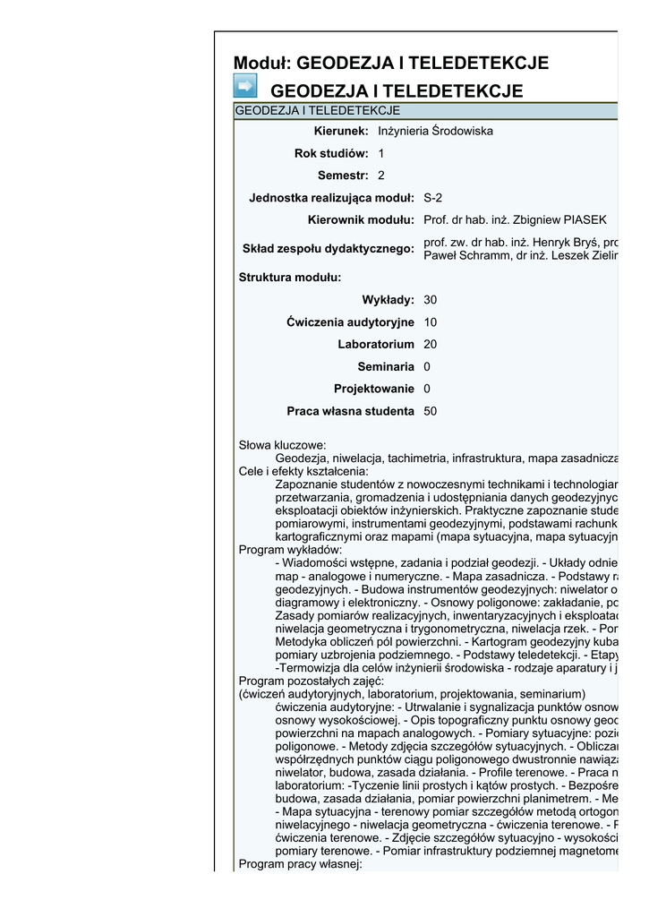 Moduł: GEODEZJA I TELEDETEKCJE GEODEZJA I TELEDETEKCJE