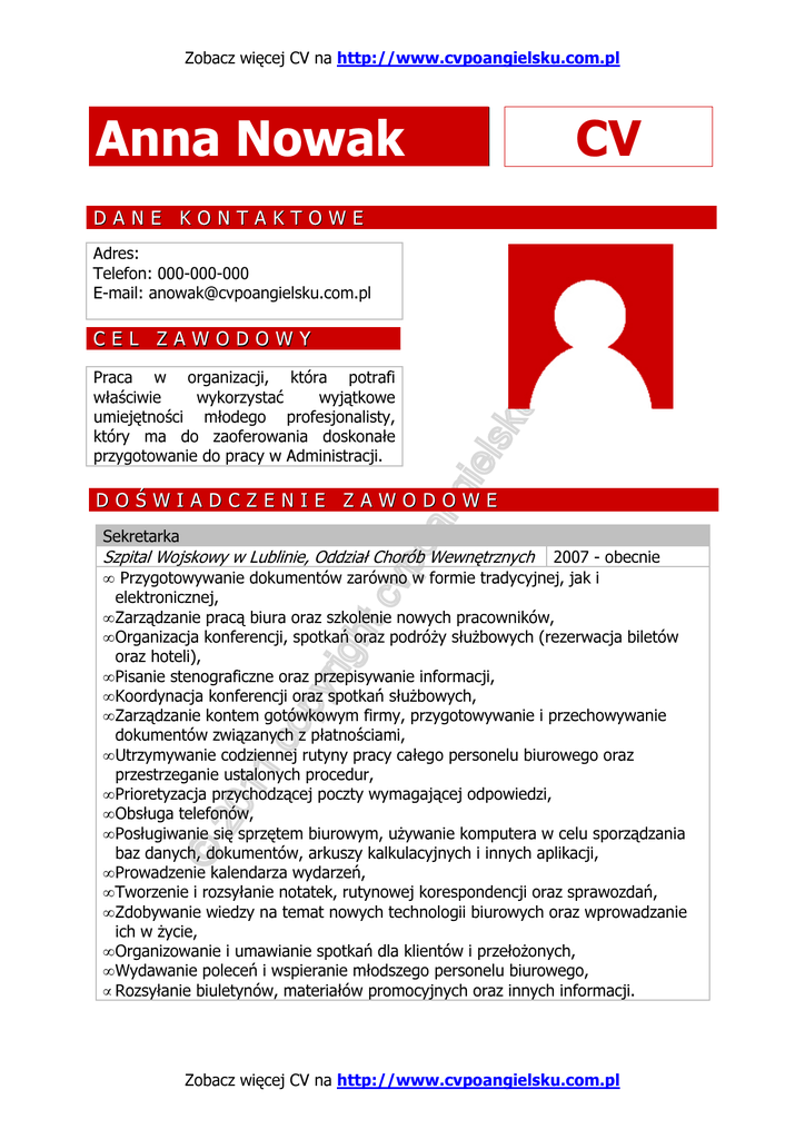 cv po angielsku - Sekretarka CV