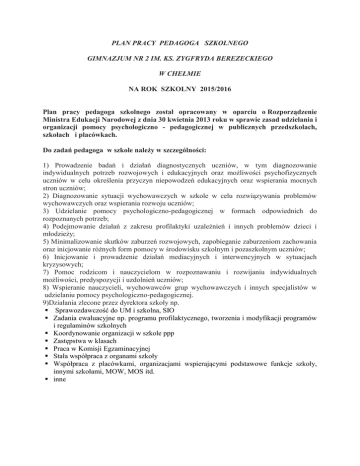 PLAN PRACY PEDAGOGA SZKOLNEGO GIMNAZJUM NR 2 IM. KS