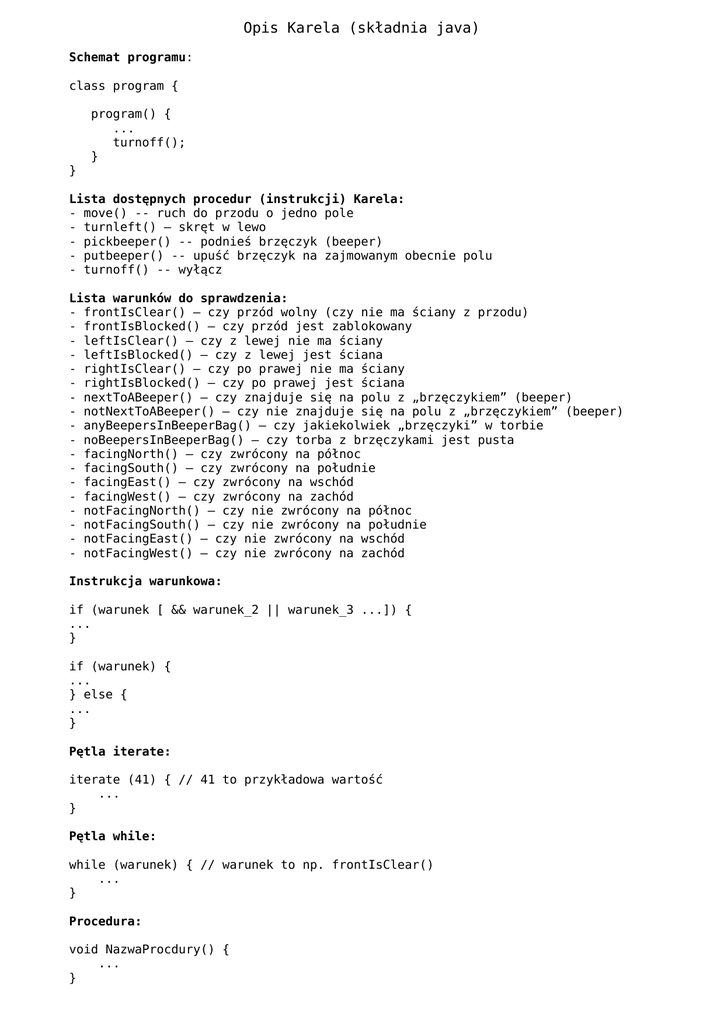 - noBeepersInBeeperBag() – czy torba z brzęczykami jest pusta