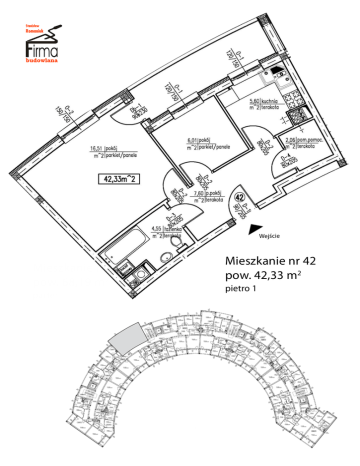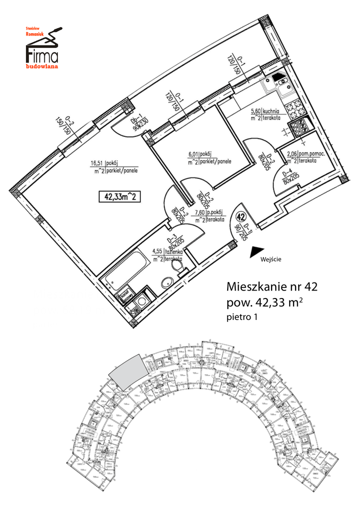 Wejście Mieszkanie nr 41 pow. 68,19 m2 parter Mieszkanie nr 42 pow. 42,33 m2 pietro 1