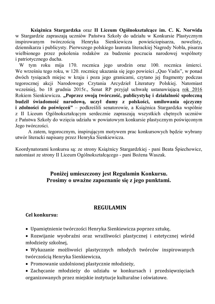 Regulamin konkursu plastycznego - SIENKIEWICZ