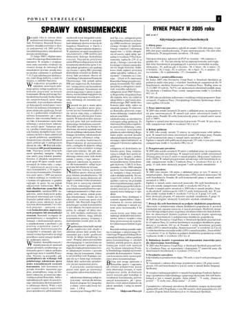 P O W I A T 5 S T R Z E L E C K I SPRAWY KONSUMENCKIE RYNEK PRACY W 2005 roku dok. ze str 3 P ocz¹tek roku to zawsze okres podsumowañ minionego okresu. Jako Powiatowy Rzecznik Konsu- mentów chcia³abym równie¿ w skró- cie podsumowaæ rok 2005 pod k¹- tem udzielonej pomocy mieszkañcom powiatu strzeleckiego. 23. lutego 2005 r. objê³am stano- wisko Powiatowego Rzecznika Kon- sumentów. W zwi¹zku z zwiêksze- niem etatu rzecznika zwiêkszy³ siê równie¿ dostêp do informacji dla mieszkañców powiatu: poradê mo¿- na uzyskaæ codziennie w godzinach 7-15. Czêæ udzielana jest telefonicz- nie, czêæ drog¹ mailow¹, a czêæ na miejscu, w siedzibie Starostwa. W wiêkszoci przypadków po udzieleniu stosownych infor- macji sprawy zostaj¹ wyjanione i za- koñczone pozytywnie na korzyæ konsumenta. Bior¹c pod uwagê liczbê udzielonych porad i liczbê oficjal- nie zarejestrowanych spraw mogê stwierdziæ, i¿ po uzyskaniu informa- cji dotycz¹cych swoich praw i mo¿- liwoci ich realizacji, konsumenci te prawa skutecznie egzekwuj¹. wiad- czy to o podnoszeniu wiadomoci zarówno konsumentów jak i sprzedawców. Jako rzecznika bardzo cie- szy fakt, i¿ konsumenci czêsto mnie informuj¹ o pozytywnym za³atwie- niu swoich spraw. Natomiast spra- u¿ytkowali towar niezgodnie z prze- Inspekcji Handlowej w Opolu z biorstwa. Z oficjalnie zarejestrowa- zowanych do koñca roku, z czego: 75 za³atwionych pozytywnie na rzecz konsumentów, a 14 negatyw- nie na rzecz konsumentów. Dwadzie- cia szeæ spraw z 2005 jest jeszcze nych przyczyn  zazwyczaj z po- nych przepisów lub niezasadnoci roszczeñ. Rzecznik wystêpuje do przedsiêbiorców o szczegó³owe in- formacje o okolicznociach sprawy, a niejednokrotnie z probami o jej ponowne rozpatrzenie (nawet w przypadkach kontrowersyjnych), szczególnie w sytuacjach, gdy konsument z ró¿nych powodów nie móg³ prawid³owo oceniæ sytuacji i skutków np. podpisania umowy. bardziej skomplikowanych i W niejednoznacznych sprawach spisano protokó³ z polubownego za- koñczenia sporu w trakcie spotkania ugodowego stron w siedzibie Rzecznika. Niestety s¹ przypadki, gdy przedsiêbiorca nie wykazuje woli polubownego zakoñczenia sporu gnacjê konsumentki bez op³aty specjalnej za odst¹pienie i anulo- swoich reklamacji. Konsumenci nie dawc¹, zawsze jednak maj¹ prawo do - informacji dotycz¹cej swoich praw i tak¹ informacjê od rzecznika uzy- dziale poci¹gu. PKP uzna³o oko- tywnie na rzecz konsumenta gdy¿ ci Rzecznika jest ochrona praw konsu- skutecznego dochodzenia roszczeñ. Wszystkie sprawy s¹ na bie¿¹co re- liwe do szybkiego zakoñczenia. Przed- z powodu wielu czynników wymaga jedynie cenê biletu odszkodowania za niew³aciwe wykonanie us³ugi pralniczej. Po ceny ga³a siê kwoty 3.240,32 z³. Konjêzykowy kurs korespondencyj- sumentka w roku 2000 zakupi³a niektóre sprawy dotycz¹ umów ny, nastêpnie z niego zrezygno- daj¹ dokumentacjê i trudno jest im udowodniæ stosowane przez nich praktyki. Jako Rzecznik mogê tylko wy. Jeli dzia³ania mediacyjne nie przynosz¹ efektów, mogê udzieliæ konsumentom pomocy zwi¹zanej z dochodzeniem swoich praw na drodze s¹dowej. agadnieniem, które budzi najwiêk Z sze w¹tpliwoci jeli chodzi o udzielane przeze mnie porady kon- sumenckie jest z kolei mo¿liwoæ zwrotu do sklepu niewadliwego to- waru. Przepisy prawa powszechnie obowi¹zuj¹cego w naszym kraju nie reguluj¹ tej kwestii i sprzedawcy nie maj¹ obowi¹zku przyjmowania zwrotu zakupionych towarów z powodu zmiany decyzji konsumenta. Zale¿y to od ich dobrej woli. Kupuj¹cy cza- sem nie s¹ w stanie tego zrozumieæ. Jednak takie zachowanie sprzedaw- - temu, zwrotu kwoty ceny biletu oraz ¿¹danego odszkodowania konsu- mentce, która w zwi¹zku z win¹ firmy przewozowej nie wyjecha³a w planowanym terminie za gra- nicê Rzecznik realizuje ponadto zada- nia wynikaj¹ce z opracowanego Powiatowego Programu Edukacji Kon- sumenckiej (lekcje z zakresu podstaw prawa konsumenckiego w szko³ach rednich, artyku³y prasowe, akcje informacyjne wród osób starszych etc). Na stronie internetowej Powia- tu Strzeleckiego znajduje siê równie¿ poradnik dla konsumentów Vademe- cum konsumenta, który zawiera podstawy prawa konsumenckiego. ior¹c pod uwagê zg³aszane u mi mo uz a s a dni o ny c h r o s z c z e ñ ców nie jest naruszeniem prawa. B przeze mnie spraw po interwencji mnie interwencje uwa¿am, i¿ warto praw, przedsiêbiorcy czuj¹ siê bez- karni i zdarza siê, ¿e nawet nie odpo- wiadaj¹ na pisma Rzecznika. Jedne z najtrudniejszych spraw do pozytyw- Z pozytywnie zrealizowanych szczególnie zadowolona by³am m.in. z: - nego zakoñczenia dla konsumentów rystycznej  kolonie dla dziecka, których program by³ niezgodny to reklamacje obuwia. Wiele z nich z ofert¹ - zwrot ca³ej kwoty ko- jest rozpatrywanych negatywnie przez sprzedawców, jeli konsumenci zakoñczenia reklamacji us³ugi tu- - lonii  1.139 z³ uznania przez Orange PKT Cen- 6 osób kontynuowa³o pracê w ramach umów zawartych w 2004 r. Ogó³em w ramach robót publicznych pracowa³o 155 osób, w tym celu zosta³y zaanga¿owane rodki w wysokoci 500,2 tys z³. W 2005 roku zosta³o zawartych 29 umów z zak³adami pracy na zorganizowa- 29 miejsc pracy (w tym 21 umów w ramach projektu Moja szansa realizowanych z EFS). W ramach przygotowania zawodowego osób bezrobotnych zo- sta³y zaanga¿owane rodki z Funduszu Pracy w wysokoci 95,6 tys z³. Z grupy 15 osób, które ukoñczy³y program 7 osób uzyska³o zatrudnienie. 6. Sta¿e zawodowe W 2005 roku zawarto 158 umów z zak³adami pracy (w tym 72 umowy w osób bezrobotnych. Ponadto 48 osób kontynuowa³o pracê w ramach umów Ogó³em w ramach umów sta¿owych pracowa³o 206 osób bezrobotnych, w tym celu zosta³y zaanga¿owane rodki w wysokoci 642,9 tys z³. Ponadto w ramach umów zawartych w 2004 roku w ramach projektu Szan- znalezienia firmy dzia³aj¹cej w systemie argentyñskim i dopro- posiada dowodów naruszenia jego konsumenta. Je