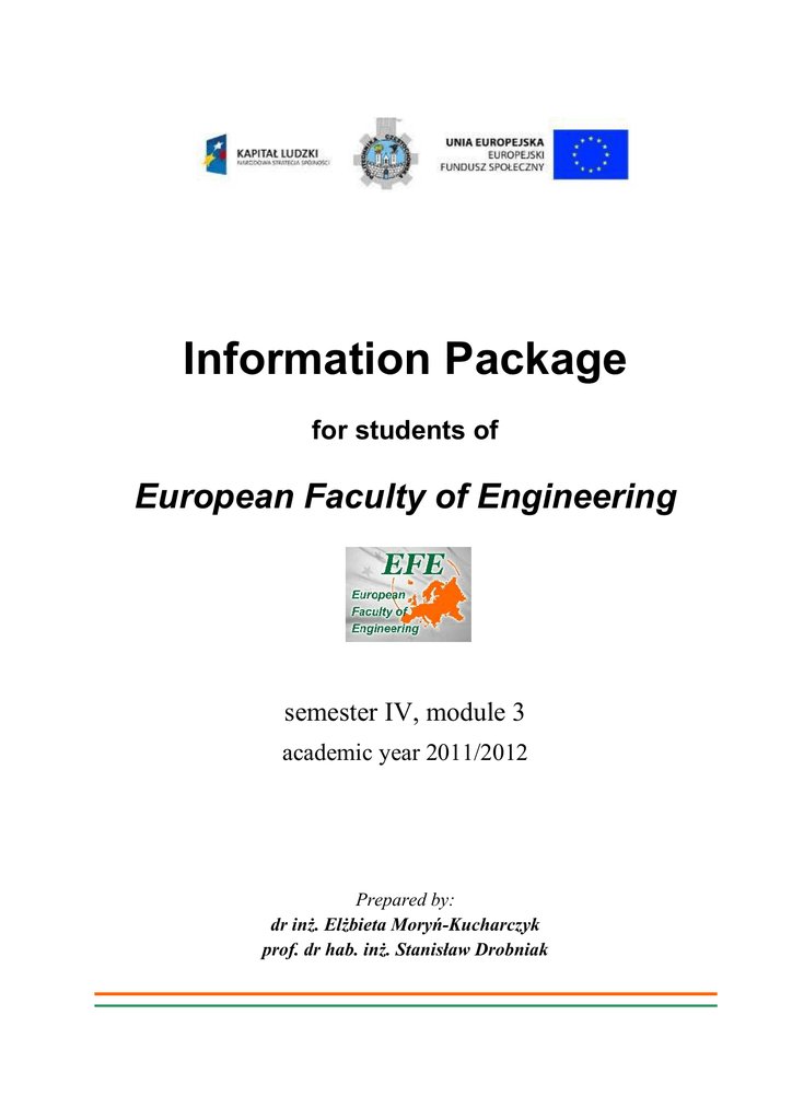 Information Package for students of European Faculty of Engineering semester IV, module 3 academic year 2011/2012 Prepared by: dr inŜ. ElŜbieta Moryń-Kucharczyk prof. dr hab. inŜ. Stanisław Drobniak Harmonogram semestru IV dla EFE/ Timetable of semester IV rok akademicki 2011/2012/ Academic year 2011/2012 1. Moduł I/ Module I Zajęcia dydaktyczne 20.02.2012 – 23.03.2012 (5 tygodni zajęć) Sesja egzaminacyjna 26.03.2012 – 27.03.2012 Przedmioty modułu I: - Finanse, rachunkowość oraz rachunek kosztów dla inŜynierów (Engineering Costing), (30w, 15ćw)Z [3 ECTS] - Podstawy elektrotechniki i elektroniki (Electrical Design), (30w, 15l)E [4 ECTS] - Prawo gospodarcze (Commercial Law), (30w)Z [2 ECTS] Razem: 120 godz., 1E, 2Z 2. Moduł II/ Module II Zajęcia dydaktyczne 28.03.2012 – 11.05.2012 (5 tygodni zajęć) Sesja egzaminacyjna 14.05.2012 – 15.05.2012 Przedmioty modułu II: - Fizyka techniczna – Mechanika płynów (Engineering Physics - Fluid Mechanics), (30w, 15ćw, 15l)E [5 ECTS] - Biologia, ekologia i ochrona środowiska III (Biology, Ecology and Environmental Protection III), (15w, 30ćw)E [3 ECTS] - Mikro- i makroekonomia II (Micro- and Macroeconomics II) - 25w Razem: 130 godz., 2E 3. Moduł III/ Module III Zajęcia dydaktyczne 16.05.2012 – 21.06.2012 (5 tygodni zajęć) Sesja egzaminacyjna 22.06.2012 – 25.06.2012 Przedmioty modułu III: - Metrologia techniczna (Engineering Metrology), (15w, 15l)Z [2 ECTS] - Automatyka i robotyka w procesach produkcyjnych (Automatic Control and Robots), (30w, 15l)Z [3 ECTS] - Mikro- i makroekonomia II (Micro- and Macroeconomics II), (5w, 15ćw)E [2 ECTS] Razem: 95 godz., 1E, 2Z Cały semestr, 2 godz. tygodniowo: Projekt (Individual project), (30P)Z [3 ECTS] Razem: 30 godz., 1Z Razem semestr IV: 375 godz., 4E, 5Z (E – egzamin, Z – zaliczenie) 2 Zajęcia EFE w III module IV semestru (5 tygodni: 16.05.2012÷21.06.2012) rok akademicki 2011/2012 EFE workplan for 3rd module of 4th semester (5 weeks: 16.05.2012÷21.06.2012) Academic year 2011/2012 Lp. No Dzień Day Metrologia techniczna (Engineering Metrology), (15w, 15l)Z 1 Środa Wednesday 16.05.2012 Lecture: 10-12 room A11 Prof. T. Nieszporek 2 Czwartek Thursday 17.05.2012 Lecture: 10-13 room CWM (ul. Dąbrowskiego 69) Dr D. Asendrych 3 Piątek Friday 18.05.2012 Lab.: 10-12 room 105C/106C (Al. Armii Krajowej 19C, 1st floor) Prof. T. Nieszporek 4 Poniedziałek Monday 21.05.2012 Lecture: 8-10 room A11 Dr D. Asendrych 5 Wtorek Tuesday 22.05.2012 6 Środa Wednesday 23.05.2012 7 Czwartek Thursday 24.05.2012 Automatyka i robotyka w procesach produkcyjnych (Automatic Control and Robots), (30w, 15l)Z Lecture: 8-10 room A11 Prof. T. Nieszporek Lecture: 8-10 room A11 Prof. T. Nieszporek Lecture: 8-10 room CWM Prof. T. Nieszporek Lecture: 10-12 room CWM Prof. T. Nieszporek Lecture: 12-14 room A11 Dr D. Asendrych Lecture: 8-10 room CWM Prof. T. Nieszporek Lab.: 12-16 room 107C (Al. Armii Krajowej 19C, 1st floor) Dr A. Rygałło 3 Mikro- i makroekonomia II (Micro- and Macroeconomics II), (5w, 15ćw)E 8 9 10 11 12 13 14 Piątek Friday 25.05.2012 Lecture: 8-10 room 212 Lab.: 10-12 room 105C/106C (Al. Armii Krajowej 19B Prof. T. Nieszporek Budynek Główny WZ) Prof. T. Nieszporek godz. 1315: spotkanie z Dziekanem WIiOŚ p. prof. Wojciechem Nowakiem Sala Posiedzeń Rady Wydziału InŜynierii i Ochrony Środowiska, ul. Dąbrowskiego 73 (parter) Poniedziałek Monday 28.05.2012 Wtorek Tuesday 29.05.2012 Środa Wednesday 30.05.2012 Lecture: 10-12 room A11 Prof. T. Nieszporek Lecture: 8-10 room CWM Prof. T. Nieszporek Lecture: 10-12 room CWM Tutorials: 12-14 room CWM Dr M. Sitek Lecture: 8-10 room CWM Prof. T. Nieszporek Lecture: 12-14 room A11 Tutorials: 14-16 room A11 Dr P. Tomski Lab.: 12-16 room 107C Dr A. Rygałło Tutorials: 8-11 Lecture: 11-12 8-10 room 313 (Al. Armii Krajowej 19B Budynek Główny WZ) 10-12 room A11 Dr M. Sitek Lecture: 8-10 room 212 Prof. T. Nieszporek Tutorials: 12-15 room A11 Lecture: 15-16 room A11 Dr P. Tomski Czwartek Thursday 31.05.2012 Piątek Friday 01.06.2012 Poniedziałek Monday 04.06.2012 Lab.: 10-12 room 105C/106C Prof. T. Nieszporek Lab.: 8-12 room 17 (Students Canteen „Gigant”) Lecture: 12-14 room CWM Prof. T. Nieszporek Dr D. Asendrych 15 Wtorek Tuesday 05.06.2012 Lab.: 10-13 room 17 Dr D. Asendrych Lecture: 8-10 room A11 Prof. T. Nieszporek 4 Lecture: 10-12 room CWM Prof. T. Nieszporek Lecture: 8-10 room CWM Prof. T. Nieszporek Lab.: 13-16 room 107C Dr A. Rygałło 16 Środa Wednesday 06.06.2012 17 Poniedziałek Monday 11.06.2012 Lecture: 12-14 room CWM Prof. T. Nieszporek Tutorials: 10-12 room A11 Dr P. Tomski 18 Wtorek Tuesday 12.06.2012 Lecture: 8-10 room CWM Prof. T. Nieszporek Tutorials: 10-12 room A11 Dr M. Sitek 19 Środa Wednesday 13.06.2012 20 Czwartek Thursday 14.06.2012 Lab.: 12-16 room 107C Dr A. Rygałło 21 Piątek Friday 15.06.2012 Lecture: 8-10 room 212 Prof. T. Nieszporek 22 Poniedziałek Monday 18.06.2012 Zaliczanie –termin sesyjny Exams - regular Zaliczanie –termin sesyjny Exams - regular Zaliczanie –termin sesyjny Exams - regular 23 Wtorek Tuesday 19.06.2012 Zaliczanie –termin poprawkowy Exams - supplementary Zaliczanie –termin poprawkowy Exams - supplementary Zaliczanie –termin poprawkowy Exams - supplementary 24 Środa Wednesday 20.06.2012 Lab.: 10-12 room 105C/106C Prof. T. Nieszporek Lecture: 8-10 room CWM Prof. T. Nieszporek Seminar - Project II 9-15 room B5 5 Prowadzący zajęcia z przedmiotu (Lecturer): Metrologia techniczna (Engineering Metrology) Dr hab. inŜ. Tadeusz Nieszporek, prof. P.Cz. [email protected] Faculty of Mechanical Engineering and Computer Science Institute of Machines Technology and Production Automation 42-200 Częstochowa Armii Krajowej 21 tel.: 34 32 50 509 Professor Tadeusz Nieszporek is a specialist in machines technology. His fields of expertise are: cutting tools, machine tools, production automation, machining. He is author and co-author of more then 120 publications, in a large numbers in 