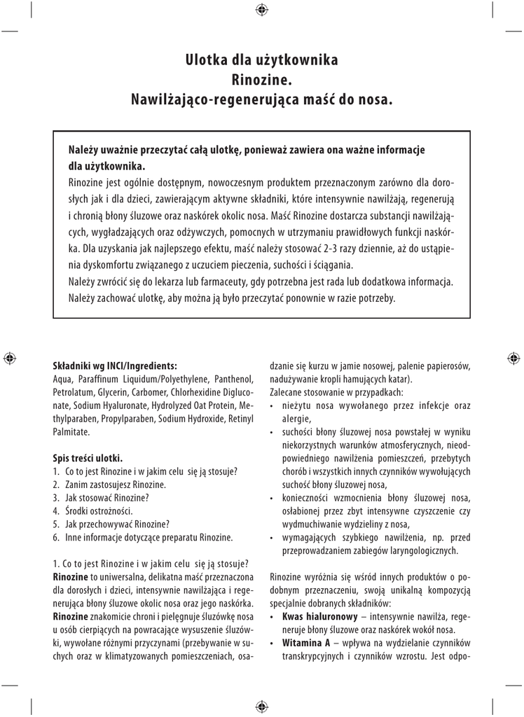 Ulotka dla użytkownika Rinozine. Nawilżająco-regenerująca