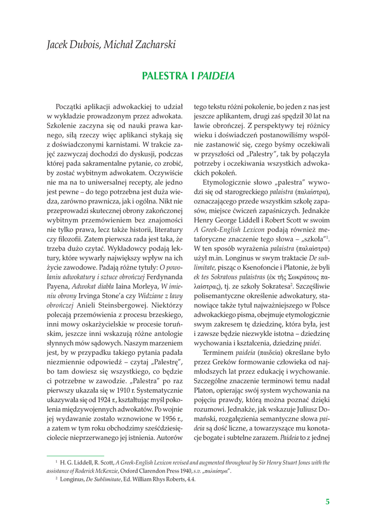 Jacek Dubois, Michał Zacharski Palestra i paideia