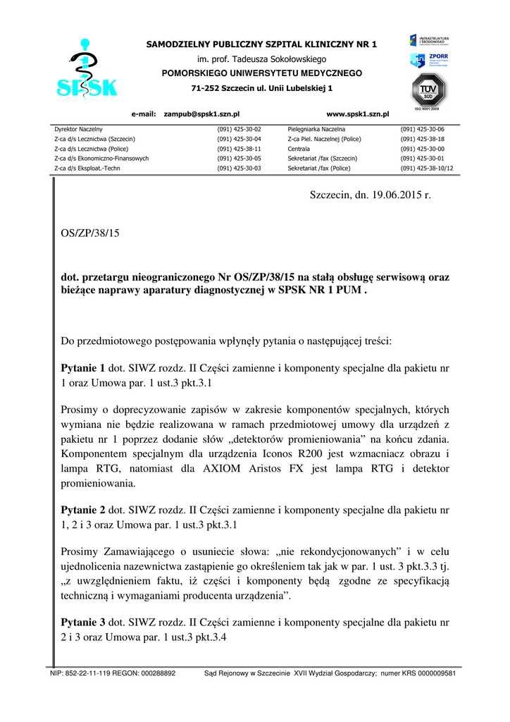 Pytania i odpowiedzi - Samodzielny Publiczny Szpital Kliniczny Nr 1
