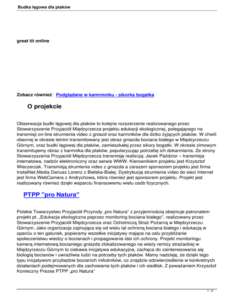 transmisji on-line strumienia video z gniazd oraz karmników dla dziko żyjących ptaków. W chwili
