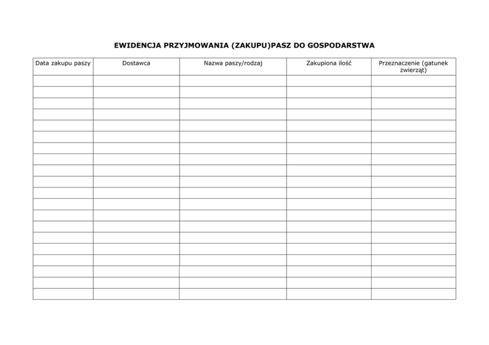 ewidencja przyjmowania (zakupu)pasz do gospodarstwa