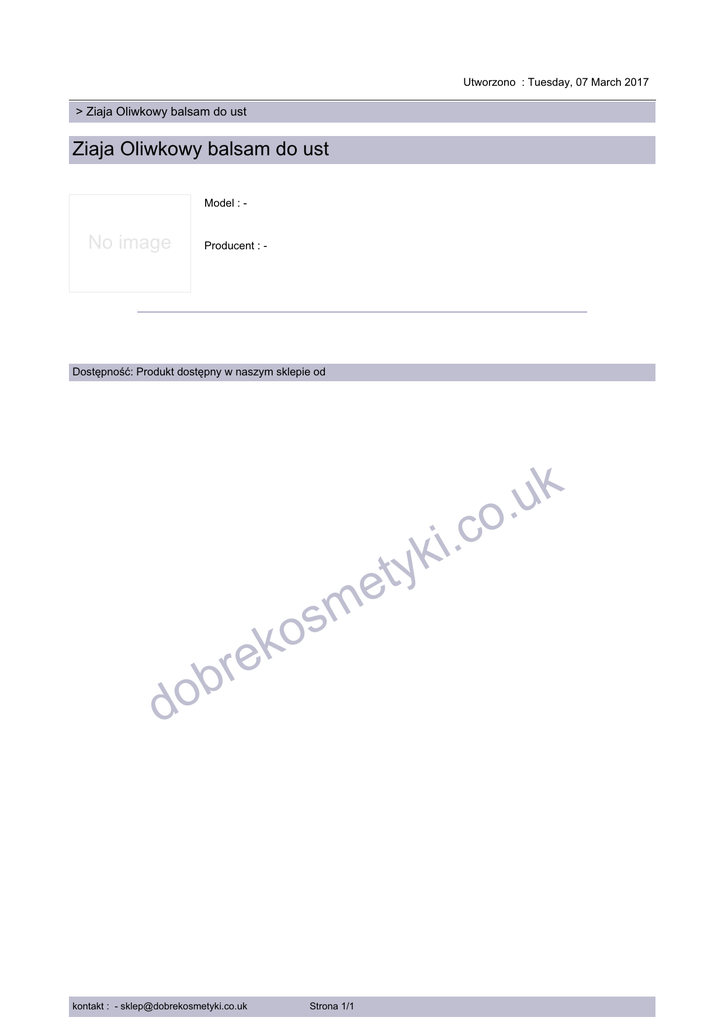 Utworzono : Tuesday, 07 March 2017 > Ziaja Oliwkowy balsam do ust Ziaja Oliwkowy balsam do ust Model : - No image Producent : - Dostępność: Produkt dostępny w naszym sklepie od y t e k u . o c . i k m s o k e br do kontakt : - [email protected] Strona 1/1