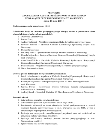 protokół z posiedzenia rady ds - Budżet partycypacyjny – Warszawa