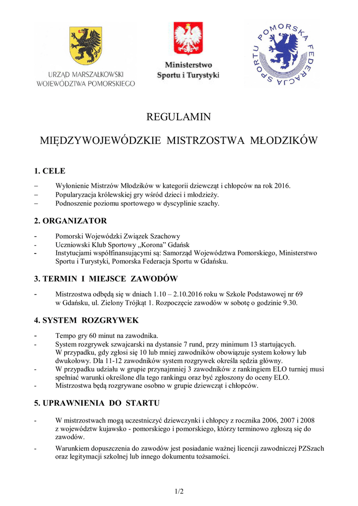 Regulamin - Pomorski Wojewódzki Związek Szachowy
