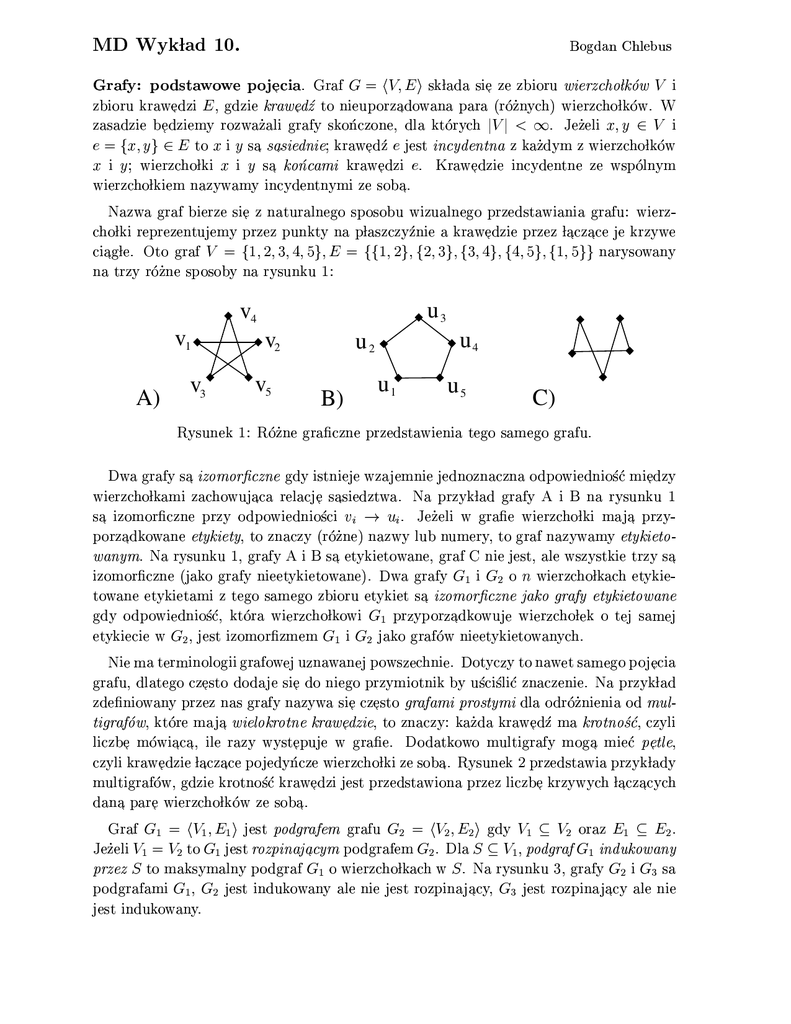 Page 1 MD Wyk¦lad 10. Bogdan Chlebus Grafy: podstawowe poj