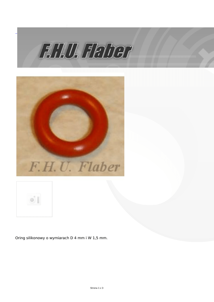 Oring silikonowy o wymiarach D 4 mm i W 1,5 mm. Strona 1 z 3 Strona 2 z 3 Oringi Silikonowe VMQ – kauczuk silikonowy, potocznie zwany silikonem. Oringi VMQ wykazują odporność na temperatury od -60°C do +210°C, krótkotrwale do +250°C. Oringi silikonowe charakteryzują się: doskonałą odpornością na działanie: powietrza, tlenu, ozonu, wody do +100°C, alkoholi, smarów i olejów mineralnych, płyny hydrauliczne glikoli znakomitą dielektrycznością (izolacją prądu) niską odpornością na ścieranie i rozciąganie nie przenoszą zapachu ani smaku dlatego często są używane w przemyśle spożywczym mogą posiadać atest spożywczy ognioodpornością wysoką przepuszczalnością gazów Strona 3 z 3