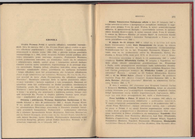 rzowie dokonał w dniu 26 października 1947 r. K siądz Prym as Hlond.