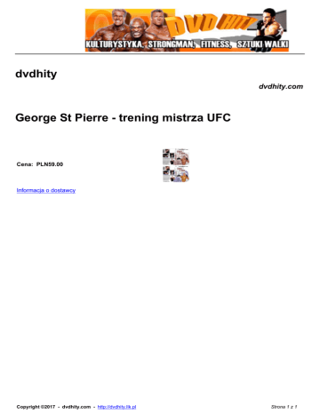 dvdhity dvdhity.com George St Pierre - trening mistrza UFC Cena: PLN59.00 Informacja o dostawcy Copyright ©2017 - dvdhity.com - http://dvdhity.llk.pl Strona 1 z 1