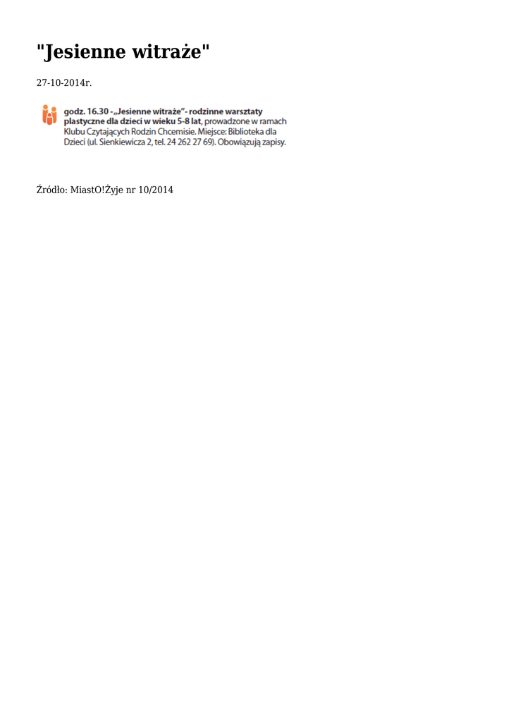 "Jesienne witraże" 27-10-2014r. Źródło: MiastO!Żyje nr 10/2014
