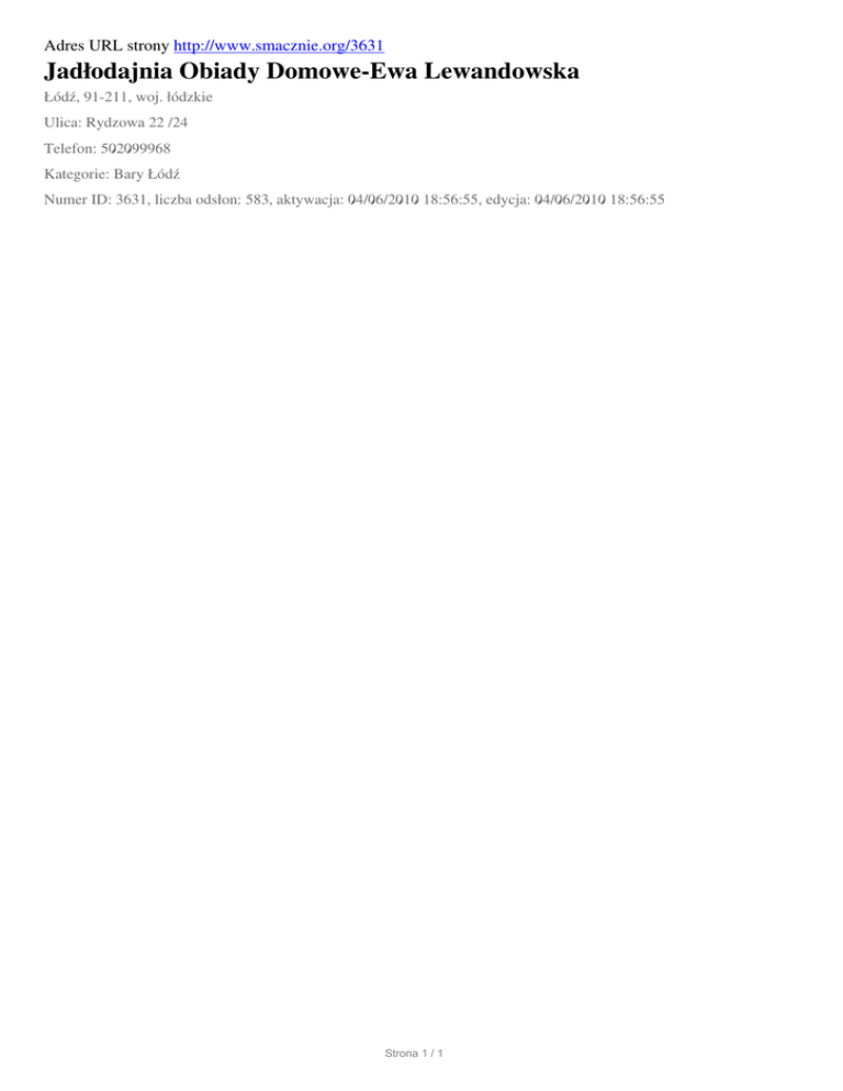 Jadlodajnia Obiady Domowe-Ewa Lewandowska, Lodz, Rydzowa