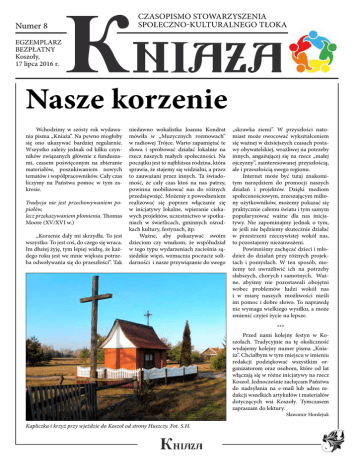 Numer 8 CZASOPISMO STOWARZYSZENIA SPOŁECZNO-KULTURALNEGO TŁOKA EGZEMPLARZ BEZPŁATNY Koszoły, 17 lipca 2016 r. Nasze korzenie Wchodzimy w szósty rok wydawania pisma „Kniaża”. Na pewno mogłoby się ono ukazywać bardziej regularnie. Wszystko zależy jednak od kilku czynników związanych głównie z funduszami, czasem poświęconym na zbieranie materiałów, poszukiwaniem nowych tematów i współpracowników. Cały czas liczymy na Państwa pomoc w tym zakresie. Tradycja nie jest przechowywaniem popiołów, lecz przekazywaniem płomienia. Thomas Moore (XV/XVI w.) „Korzenie dały mi skrzydła. To jest wszystko. To jest coś, do czego się wraca. Im dłużej żyję, tym lepiej widzę, że każdego roku jest we mnie większa potrzeba odwoływania się do przeszłości”. Tak niedawno wokalistka Joanna Kondrat mówiła w „Muzycznych rozmowach” w radiowej Trójce. Warto zapamiętać te słowa i spróbować działać lokalnie na rzecz naszych małych społeczności. Na początku jest to najbliższa rodzina, która sprawia, że stajemy się widzialni, a przez to zauważani przez innych. Ta świadomość, że cały czas ktoś na nas patrzy, powinna mobilizować nas do różnych przedsięwzięć. Możemy z powodzeniem realizować się poprzez włączanie się w inicjatywy lokalne, wpieranie ciekawych projektów, uczestnictwo w spotkaniach w świetlicach, gminnych ośrodkach kultury, festynach, itp. Ważne, aby pokazywać swoim dzieciom czy wnukom, że współudział w tego typu wydarzeniach zacieśnia sąsiedzkie więzi, wzmacnia poczucie solidarności i nasze przywiązanie do swego „skrawka ziemi”. W przyszłości natomiast może owocować wykształceniem się ważnej w dzisiejszych czasach postawy obywatelskiej, wrażliwej na potrzeby innych, angażującej się na rzecz „małej ojczyzny”, zainteresowanej przyszłością, ale i przeszłością swego regionu. Internet może być tutaj znakomitym narzędziem do promocji naszych działań i projektów. Dzięki mediom społecznościowym, zrzeszającym miliony użytkowników, możemy pokazać się praktycznie całemu światu i tym samym popularyzować ważne dla nas inicjatywy. Nie zapominajmy jednak o tym, że jeśli nie będziemy skutecznie działać w przestrzeni rzeczywistej wokół nas, to pozostajemy niezauważeni. Powinniśmy zachęcać dzieci i młodzież do działań przy różnych projektach i pomysłach. W ten sposób, możemy też uwrażliwić ich na potrzeby słabszych, chorych i samotnych. Ważne, abyśmy nie pozostawali obojętni wobec problemów ludzi wokół nas i w miarę naszych możliwości nieśli im pomoc i dobre słowo. To naprawdę nie wymaga wielkiego wysiłku, a może zmienić czyjeś życie na lepsze. *** Przed nami kolejny festyn w Koszołach. Tradycyjnie na tę okoliczność wydajemy kolejny numer pisma „Kniaża”. Chciałbym w tym miejscu w imieniu redakcji podziękować wszystkim organizatorom oraz osobom, które od lat włączają się w różne inicjatywy na rzecz Koszoł. Jednocześnie zachęcam Państwa do nadsyłania na e-mail lub adres redakcji wszelkich artykułów i materiałów dotyczących wsi Koszoły. Tymczasem zapraszam do lektury. Sławomir Hordejuk Kapliczka i krzyż przy wjeździe do Koszoł od strony Huszczy. Fot. S.H. WYDARZENIA Koszoły na dożynkach gminnych 23 sierpnia 2015 na Placu Jagiellońskim w Łomazach odbyło się coroczne święto plonów – czyli dożynki gminne. Nie zabrakło na nich mieszkańców Koszoł. O bchody rozpoczęły się uroczystą Mszą Św. w kościele p.w. Św. Apostołów Piotra i Pawła, po czym nastąpił przemarsz korowodu dożynkowego z kościoła do parku w asyście Orkiestry Dętej OSP Łomazy. Część oficjalna święta plonów nastąpiła tuż po prezentacjach wieńców, wręczeniu chleba dożynkowego, a następnie powitaniu i wystąpieniu gości. W tym wyjątkowym dla rolników dniu, Plac Jagielloński zmienił się nie do poznania. Znalazły tu swoje miejsce wieńce dożynkowe oraz stoiska promujące miejscowości z obrębu gminy. Mieszkańcy odświętnie ubrani prezentowali wykonane własnoręcznie wyroby zarówno artystyczne, jak i kulinarne. Mieszkańcy Koszoł również po raz kolejny zmobilizowali się do wzięcia udziału w tym wyjątkowym święcie, wystawiając stoisko promujące miejscowość oraz przygotowany specjalnie na tę okoliczność wieniec z tegorocznych Mieszkańcy Koszoł z wieńcem dożynkowym. zbóż w kształcie krzyża. Na dożynkowym stole nie mogło zabraknąć staropolskich dań i tak też było tym razem. Uroczystość uświetniały występy artystyczne zaproszonych gości. Red. Habilitacja dla dr. Kazimierza Bandarzewskiego W dniu 28 września 2015 r. uchwałą Rady Wydziału Prawa i Administracji Uniwersytetu Jagiellońskiego, dr. Kazimierzowi Bandarzewskiemu, nadany został stopień doktora habilitowanego w zakresie nauk prawnych na podstawie oceny dotychczasowego dorobku oraz pracy habilitacyjnej pod tytułem „Samorząd gospodarczy w prawie polskim. Studium prawne”. Powyższa praca została wydana drukiem w styczniu 2014 r. przez Wydawnictwo Uniwersytetu Jagiellońskiego (ss. 332). Natomiast w ubiegłym roku wspólnie z Mirosławem Stecem napisał książkę pt. „Rozwój regionalny instrumenty realizacji i rola samorządu województwa” (Wydawnictwo Wolters Kluwer, ss. 272). Serdecznie gratulujemy i życzymy doktorowi kolejnych sukcesów w pracy naukowej! Sławomir Hordejuk O dr. Bandarzewskim szerzej pisaliśmy w „Kniaży” nr 3 z 2011 r. 2 Dr hab. Kazimierz Bandarzewski tuż po promocji. Fot. ze zbiorów K. Bandarzewskiego. WYDARZENIA Gminny Dzień Strażaka W niedzielę, 1 maja 2016 r. w Dubowie odbyły się obchody Gminnego Dnia Strażaka. Podczas uroczystości druhom wręczono odznaczenia resortowe. Pośród nagrodzonych byli też strażacy z Koszoł. Uroczystości rozpoczęły się mszą św. koncelebrowaną przez ks. Henryka Jakubowicza, powiatowego kapelana strażaków oraz ks. Tadeus