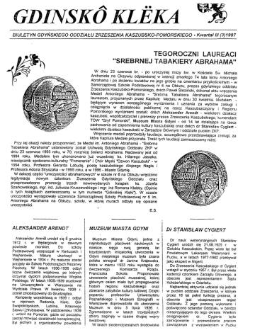 Arendt, Muzeum Miasta Gd>"nł oraz Stanisław Cygien. Laudacje dotyczące wjTOznionych