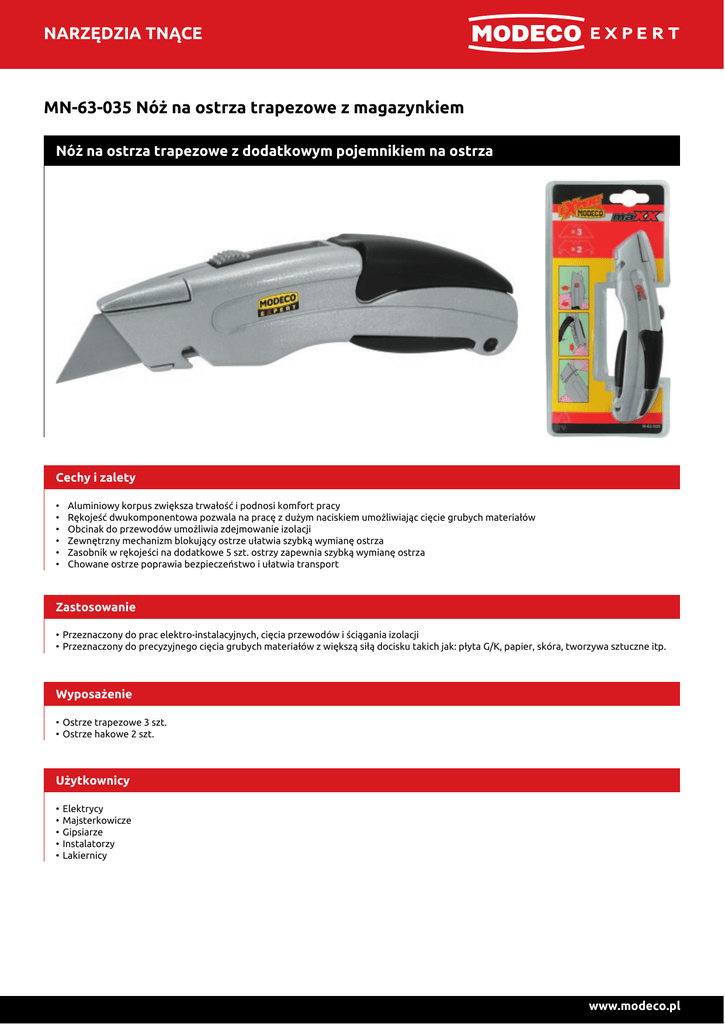 NARZĘDZIA TNĄCE MN-63-035 Nóż na ostrza trapezowe
