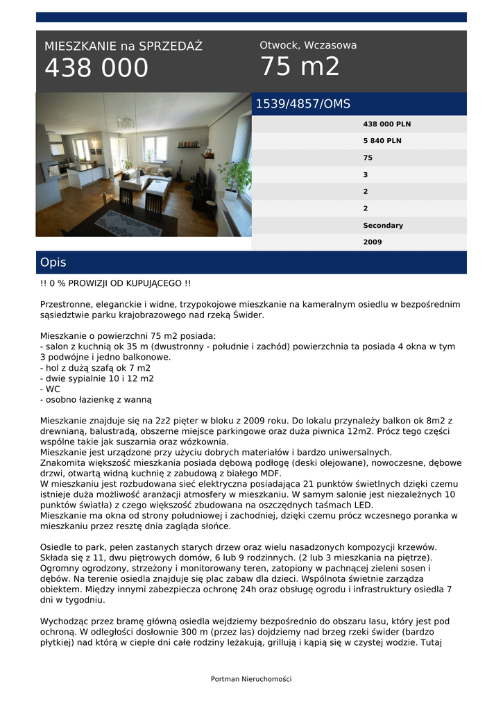 438 000 75 m2 - Portman Nieruchomości