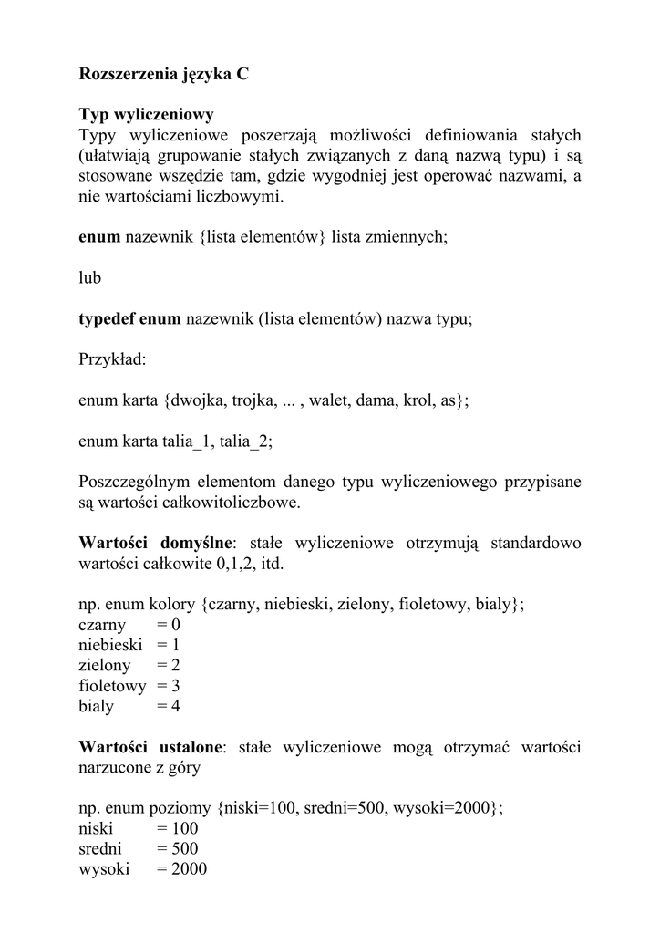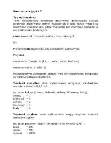 Rozszerzenia języka C Typ wyliczeniowy - prz