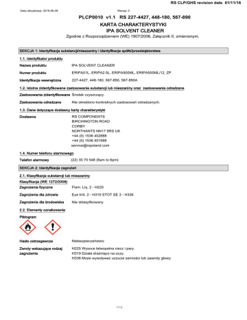 KARTA CHARAKTERYSTYKI IPA SOLVENT CLEANER 3/CP v RS 22