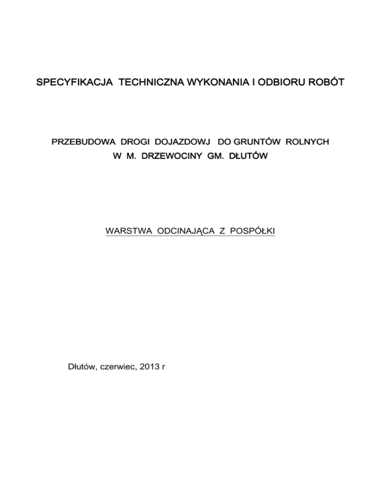 SPECYFIKACJE TECHNICZNE DROGA DRZEWOCINY WARSTWA