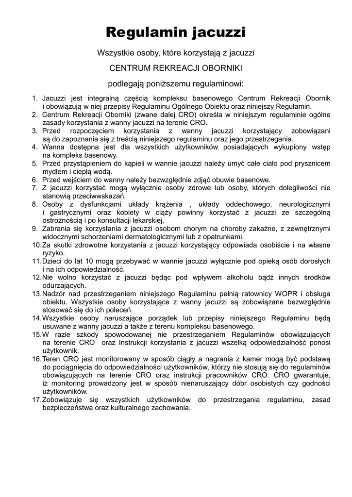 Regulamin jacuzzi - Centrum Rekreacji Oborniki