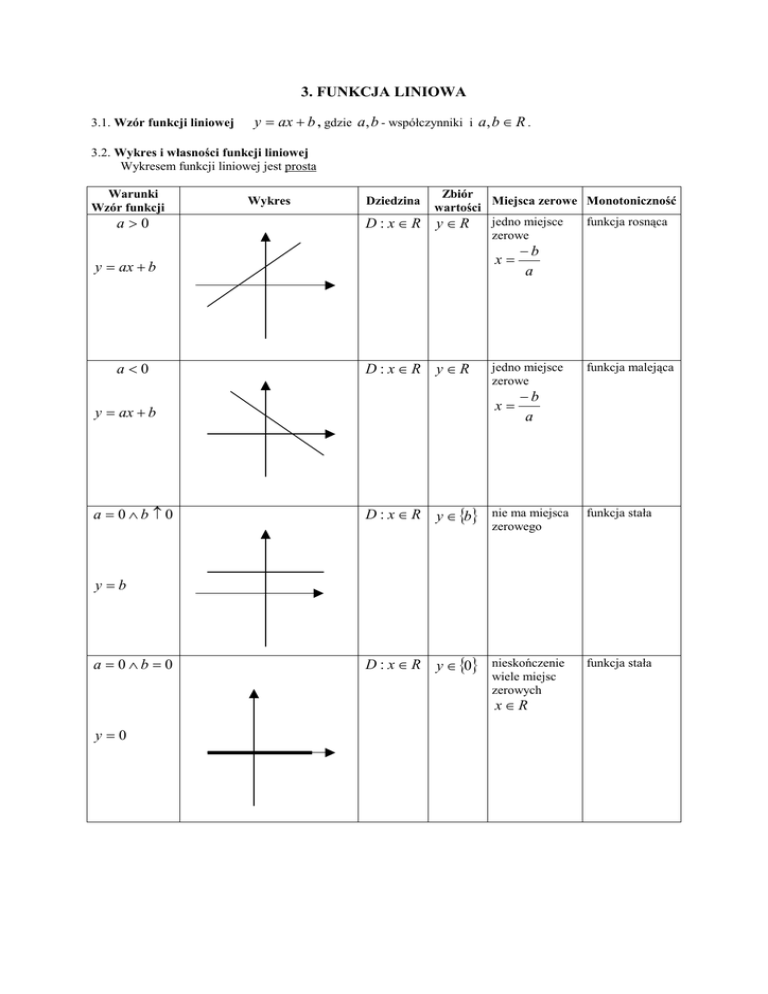 y = ax + b , gdzie a, b - współczynniki i a, b ∈ R .