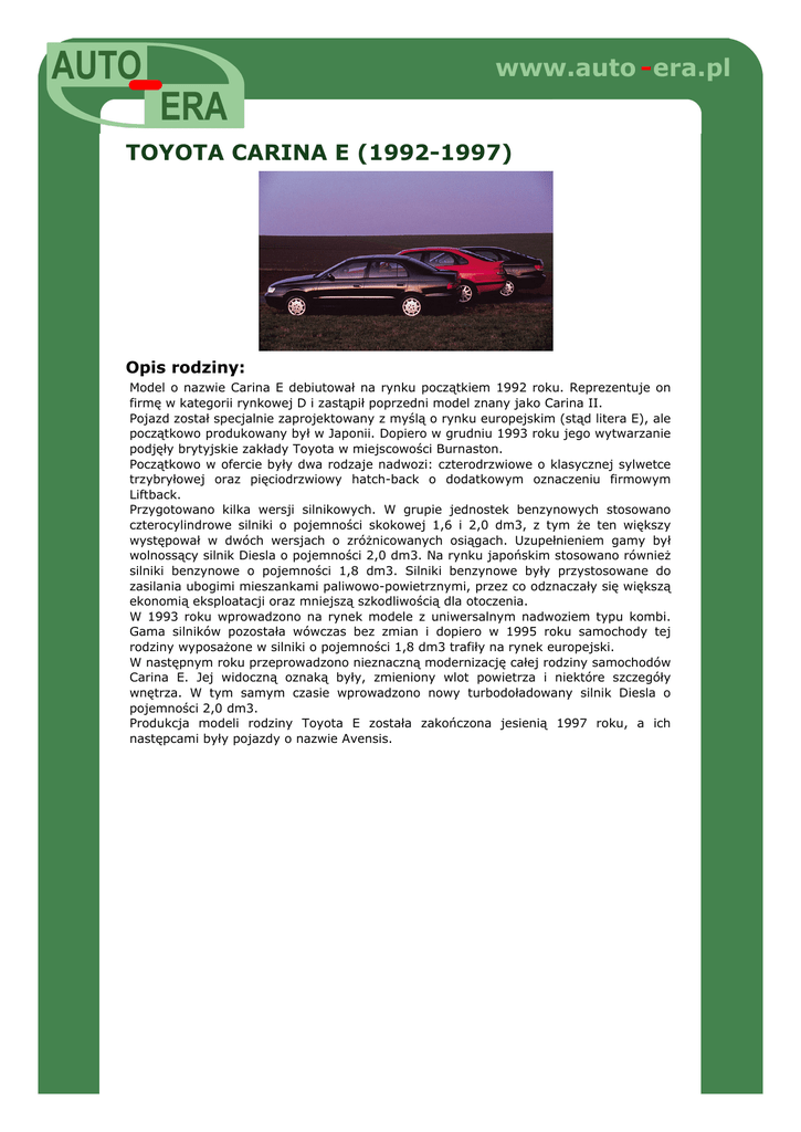 Opis rodziny: TOYOTA CARINA E. - AUTO-ERA