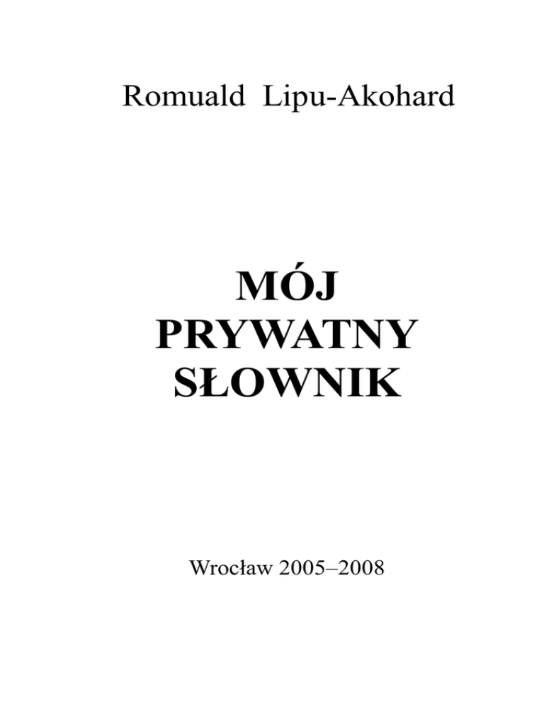 Romuald Lipu-Akohard MÓJ PRYWATNY SŁOWNIK Wrocław 2005–2008 2 Kopiowanie, powielanie i bezpłatne rozpowszechnianie tej elektronicznej wersji książki jest dozwolone, a nawet mile widziane. 3 Podziękowania Dziękuję wszystkim tym, którzy mnie wspierali. Ich życzliwość i wiara dodawały mi sił, gdy mi ich brakowało. Dziękuję również wszystkim tym, którzy mi utrudniali życie i stwarzali problemy, bo w ten sposób pomogli mi umocnić się. 4 Spis treści Przedmowa...............................5 Aborcja.....................................7 Antysemityzm.........................27 Ateizm....................................33 Bałwochwalstwo.....................41 Bełkot.....................................44 Bóg.........................................46 Byt..........................................69 Dobro i zło..............................74 Ekspert...................................90 Eutanazja................................96 Grzech..................................105 Honor....................................110 Jałmużna...............................111 Kara......................................114 Kłamstwo.............................125 Konopie................................126 Kościół.................................137 Korupcja...............................138 Kradzież...............................141 Logika..................................147 Miłość...................................160 Muzyka.................................172 Nienawiść.............................188 Obraza..................................195 Odpowiedzialność.................198 Pokora..................................201 Polityka................................207 Prawda.................................214 Prawo...................................222 Prawo a sprawiedliwość.......262 Prekognicja...........................274 Przebojowość........................276 Przeciwieństwa.....................278 Przekonania..........................281 Relatywizm...........................282 Religijność............................289 Rozwód.................................293 Sekta.....................................303 Siła woli...............................313 Słowo....................................314 Spontaniczność.....................317 Sprawiedliwość....................322 Strach...................................325 Szczęście..............................335 Świadomość..........................336 Świętość...............................346 Terroryzm.............................350 Tolerancja.............................368 Uczciwość............................371 Uczucia.................................373 Walka....................................382 Wiara....................................387 Wiara a rozum......................389 Własność..............................391 Wolność woli........................397 Wstyd...................................400 Wybaczenie...........................405 Wymóg.................................410 Zazdrość...............................422 Zdrada..................................428 Bibliografia...........................431 5 Przedmowa Ta książka nie jest oczywiście żadnym słownikiem. Jednak pod pewnymi względami przypomina ona słownik, chociażby dlatego, że poszczególne hasła są ułożone alfabetycznie, a również dlatego, że czynione są starania, aby wyjaśnić w miarę dokładnie możliwe znaczenia tych haseł. Nie pretenduje ona również do miana pracy o charakterze naukowym, jakkolwiek treść książki przy omawianiu wybranych pozycji ociera się o podstawowe zagadnienia religijne, filozoficzne, etyczne, psychologiczne i społeczne, które są przedmiotem zainteresowania różnych nauk. Nie jest to także zbiór artykułów, felietonów czy esejów. Jednak niektóre, zwłaszcza te obszerniej potraktowane opracowania haseł, mają pewne cechy wymienionych form dziennikarskich. Nie jest może najważniejsze, czym naprawdę jest ta książka. Dla mnie, jej autora, jest ona na pewno zbiorem ważnych przemyśleń. Dla Czytelnika może się stać zarówno źródłem wiedzy, potwierdzeniem Jego własnej wizji rzeczywistości, zachętą do własnych przemyśleń, jak i powodem do krytyki czy nawet kamieniem obrazy. Prezentowany bowiem w tej pracy model świata jest jednym z wielu. Jeśli więc kogoś bulwersują niektóre poglądy w niej przedstawione, może byłoby lepiej, aby czytał ją wybiórczo, lub nie czytał jej wcale. Co było powodem powstania tej książki? Zrodziła się ona z przyczyn bardzo osobistych. Parę lat temu dokonałem odkrycia, które mnie samego bardzo zaskoczyło. Stwierdziłem, że przeważająca większość ludzi nie rozumie w pełni znaczeń słów, którymi się posługuje. Gdy mi ktoś prawił na przykład o odpowiedzialności, wówczas pytałem: „A czy wiesz co to jest właściwie odpowiedzialność?” W odpowiedzi zwykle słyszałem: „...aaa, ...no..., to przecież jest oczywiste”. W najlepszym razie udawało mi się wydusić ze swojego rozmówcy jakąś zwięzłą definicję słownikową, ale nic ponad to. Wtedy uświadomiłem sobie, że płytkie, powierzchowne rozumienie słów – to bardzo typowe zjawisko w naszej kulturze. W dodatku każdy rozumie je na swój sposób, czasem niepowtarzalny i jedyny w swoim rodzaju. Słowa bowiem, obok myśli i czynów, to jedno z narzędzi indywidualnego kształtowania każdej ludzkiej egzystencji. Słuszne się więc wydaje stwierdzenie: „Powiedz mi co znaczą dla ciebie określone słowa, a powiem ci kim jesteś”. Uświadomienie sobie tego wszystkiego skłoniło mnie to do długich rozmyślań. W końcu zdałem sobie sprawę z tego, że ja również nie rozumiem wielu pojęć. Słowa to przecież tylko „symbole”, „etykietki”, które same przez się nic nie znaczą. Ich znaczenie zawiera się bowiem w ich rozumieniu – a z rozumieniem bywa różnie. Stąd narodził się pomysł głębo