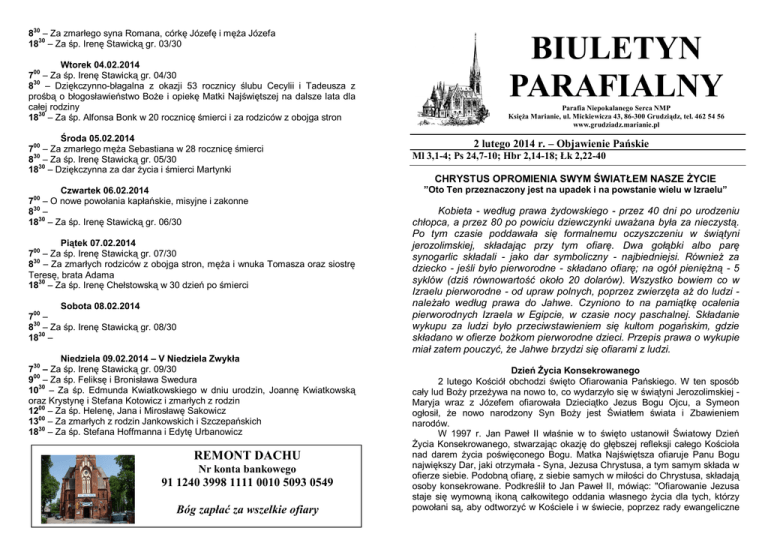 biuletyn parafialny - Parafia Niepokalanego Serca Najświętszej