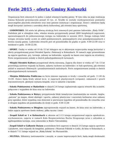 Ferie 2015 - oferta Gminy Koluszki