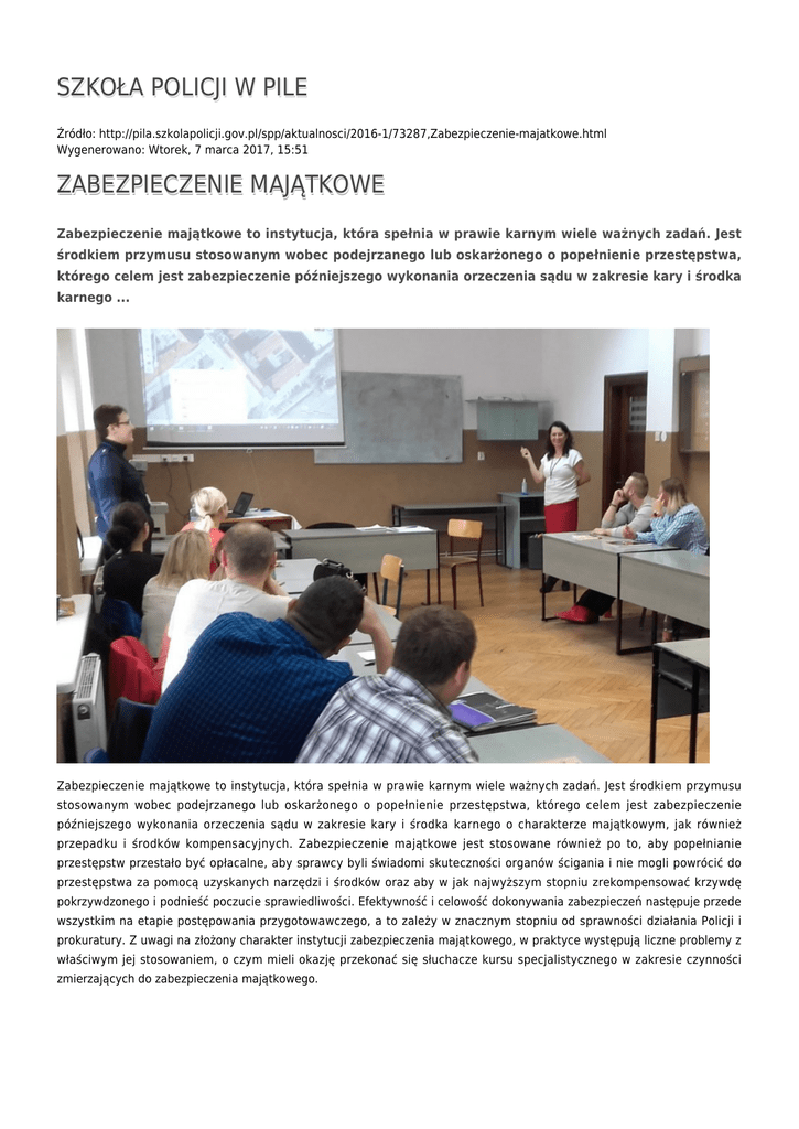 SZKOŁA POLICJI W PILE Źródło: http://pila.szkolapolicji.gov.pl/spp/aktualnosci/2016-1/73287,Zabezpieczenie-majatkowe.html Wygenerowano: Wtorek, 7 marca 2017, 15:51 ZABEZPIECZENIE MAJĄTKOWE Zabezpieczenie majątkowe to instytucja, która spełnia w prawie karnym wiele ważnych zadań. Jest środkiem przymusu stosowanym wobec podejrzanego lub oskarżonego o popełnienie przestępstwa, którego celem jest zabezpieczenie późniejszego wykonania orzeczenia sądu w zakresie kary i środka karnego ... Zabezpieczenie majątkowe to instytucja, która spełnia w prawie karnym wiele ważnych zadań. Jest środkiem przymusu stosowanym wobec podejrzanego lub oskarżonego o popełnienie przestępstwa, którego celem jest zabezpieczenie późniejszego wykonania orzeczenia sądu w zakresie kary i środka karnego o charakterze majątkowym, jak również przepadku i środków kompensacyjnych. Zabezpieczenie majątkowe jest stosowane również po to, aby popełnianie przestępstw przestało być opłacalne, aby sprawcy byli świadomi skuteczności organów ścigania i nie mogli powrócić do przestępstwa za pomocą uzyskanych narzędzi i środków oraz aby w jak najwyższym stopniu zrekompensować krzywdę pokrzywdzonego i podnieść poczucie sprawiedliwości. Efektywność i celowość dokonywania zabezpieczeń następuje przede wszystkim na etapie postępowania przygotowawczego, a to zależy w znacznym stopniu od sprawności działania Policji i prokuratury. Z uwagi na złożony charakter instytucji zabezpieczenia majątkowego, w praktyce występują liczne problemy z właściwym jej stosowaniem, o czym mieli okazję przekonać się słuchacze kursu specjalistycznego w zakresie czynności zmierzających do zabezpieczenia majątkowego. W związku z drugą w tym roku edycją tego kursu, gościem Szkoły Policji w Pile w dniu 18 października br. była Dagna Wierzchoń – specjalista Wydziału ds. Odzyskiwania Mienia Komendy Głównej Policji, która przybliżyła słuchaczom zadania WOM KGP, który od 5 grudnia 2008 roku pełni rolę Krajowego Biura Odzyskiwania Mienia i jest jedynym w Polsce punktem kontaktowym ds. międzynarodowej wymiany informacji o składnikach majątku w sprawach karnych. Tematem wykładu Dagny Wierzchoń było również zagadnienie współpracy międzynarodowej w zakresie ustalania składników majątkowych sprawców przestępstw zlokalizowanych poza granicami naszego kraju oraz policyjne i pozapolicyjne bazy danych będące bogatym źródłem informacji o sytuacji majątkowej figurantów. Ponadto, gościem Szkoły w tym dniu na wspomnianym kursie był kom. Michał Marachowski z Zespołu ds. Odzyskiwania Mienia Wydziału dw. z Przestępczością Gospodarczą Komendy Wojewódzkiej Policji w Bydgoszczy, który podczas swojej prelekcji omówił metody ustalania składników majątkowych na etapie pracy operacyjnej i dochodzeniowo – śledczej oraz problematykę rejestracji zabezpieczenia majątkowego oraz odzysku mienia w policyjnych bazach danych. Ponadto, nasz gość zaprezentował możliwości uzyskiwania cennych informacji o składnikach majątkowych w wyszukiwarkach internetowych typu googlemaps, geoportal.gov.pl, google, Elektroniczne Księgi Wieczyste (EKW) oraz w Centralnej Bazie Danych Ksiąg Wieczystych (CBDKW), GUGIK i AMRON. Spotkanie z praktykami „z terenu” spotkało się z żywym odbiorem i zainteresowaniem słuchaczy i wzbogaciło proces dydaktyczny o aspekty praktyczne. Hanna Bigielmajer Ocena: 0/5 (0) Tweetnij