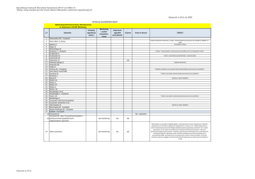 Specyfikacja Istotnych Warunków Zamówienia ZP.271/3/ORG/15 "Zakup usług ubezpieczeń dla Urzędu Miasta Milanówka i jednostek organizacyjnych" Załącznik nr III.2e do SIWZ WYKAZ ZABEZPIECZEŃ Zakład Gospodarki Komunalnej i Mieszkaniowej ul. Spacerowa 4, 05-822 Milanówek L.P 1 Jednostka Instalacja sygnalizacji pożaru Monitoring i system antywłamaniowy Stały dozór sygnałów przesyłanych Kraty w oknach UWAGI ! Brwinowska 4/8 - 3 budynki 2 budynek częściowo drewniany, 2 lokale - niezamieszkałe-przeznaczone do zasiedlenia. Ogłółem 17 lokali W budynku 4 lokale Charci Skok 6- Gmina 3 4 5 6 7 8 9 10 11 12 13 14 15 16 17 18 19 20 21 22 23 24 25 26 27 28 29 30 31 32 33 a) Dębowa 5 Długa 23 Głowackiego 29 Grabowa 3 - 2 budynki Grudowska 9 Grudowska 16 Inżynierska 3A Krakowska 11 Królowej Jadwigi 11 Królewska 96 Krótka 4 Letnicza 2A - 2 budynki Leśny Ślad 4 r.bud.1946 Literacka 26 Na Skraju 1 Niecała 4 Okólna 2A Okólna 3 Okólna 3A Okólna 4 Okólna 8A Piłsudskiego 7 bl.II Piłsudskiego 9 - 2 budynki Prosta 18 Słowackiego 7 Turczynek I-IV(4 bud.mieszkalne) Turczynek -kontenery 6 szt. Warszawska 11 Warszawska 28 - 2 budynki Wojska Polskiego 85 - 2 budynki Budynki - Turczynek Turczynek 3a Turczynek 3b - Baza Turczynek-bud.socjalny z b) pomieszczeniami gospodarczymi , magazynowymi i garażami 34 Załącznik nr III.2e Gaśnice Basen sezonowy 2 lokale - niezamieszkałe- przeznaczone do zasiedlenia, W 2-ch budynkach 9 lokali 1 lokal - zamieszkały, pozostałe lokale - niezamieszkałe tak budynek drewniany 2 budynki zasiedlone w tym jeden lokal niezamieszkały przeznaczony do zasiedlenia 7 lolaki w tym jeden niezamieszkały przeznaczony do zasiedlenia wpisany w rejestr zabytków 7 lolaki w tym jeden niezamieszkały przeznaczony do zasiedlenia wpisany w rejestr zabytków tak - częściowo tak-monitoring tak-monitoring tak tak tak tak Wykonywane są wszystkie przeglądy zgodnie z obowiązujacym prawem budowlanym. Budynek wyposażony we wszystkie urządzenia do obsługi basenu , pompy i inne . Obiekt wyposażony w alarm monitorowany przez Straż Miejską. Budynek socjalny wyposażony w łazienki 3 szt. w pełni wyposażone, 16 szt. kabin do przebieralni zamykanych drzwiami drewnianymi z okuciami, pomieszczenie gastronomiczne,pom. ratownika, pomieszczenie rekreacyjne wraz z przynależnymi zamykanymi boksami. Ogrzewacz wody. Ponadto prowadzona jest kontrola obiektu przez pracowników ZGKiM przynajmniej 4x w miesiącu poza sezonem otwarcia obiektu. W okresie zimowym częściej ze względu na konieczność kontroli temperatury w pomieszczeniu hydroforni VI-VIII Specyfikacja Istotnych Warunków Zamówienia ZP.271/3/ORG/15 "Zakup usług ubezpieczeń dla Urzędu Miasta Milanówka i jednostek organizacyjnych" Załącznik nr III.2e 35 Spacerowa 20-Willa Waleria wpisany do rej. Zabytków 36 Targ - Piłsudskiego budynki: WC, Socjalny-2, Paw. Handl. tak tak Budynek jest wpisany do rejestru zabytków. Budynek jest ogrodzony.Ogrodzenie posesji wykonane jest ze stalowych kątowników zakończonych w górnej części na ostro, posadowione na betonowym cokole, dwie bramy wjazdowe zamykane na kłódki.W budynku zainstalowany jest system alarmowy z czujnikami ruchu i czujnikami dymu. System alarmowy monitoruje firma Securitas, która w przypadku uaktywnienia systemu alarmowego wysyła patrol interwencyjny docierający do obiektu zgodnie z umową w godzinach dziennych 5-23 w ciągu 15 minut, w godzinach nocnych 23-5 w ciągu 10 minut. O każdej interwencji powiadamiana jest Straż Miejska w Milanówku. Ponadto w zależności od potrzeb, budynek kontrolowany jest przez pracowników ZGKiM ( przynajmniej 2-3 razy w ciągu miesiąca ) i prowadzone są prace porządkowe oraz konserwacyjne w budynku i na terenie nieruchomości, co odnotowane jest w wewnętrznych kartach pracy. Kontroli w budynku dokonują również pracownicy Milanowskiego Centrum Kultury, ponieważ w budynku znajdują się ubezpieczone przez nich eksponaty. tak tak