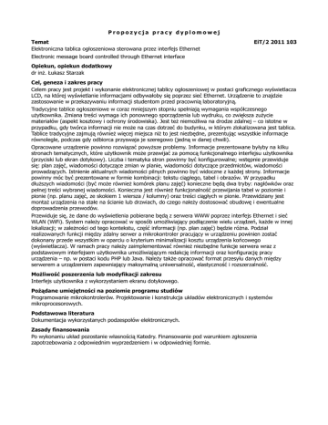 Propozycja pracy dyplomowej Temat EiT/2 2011 103 Elektroniczna
