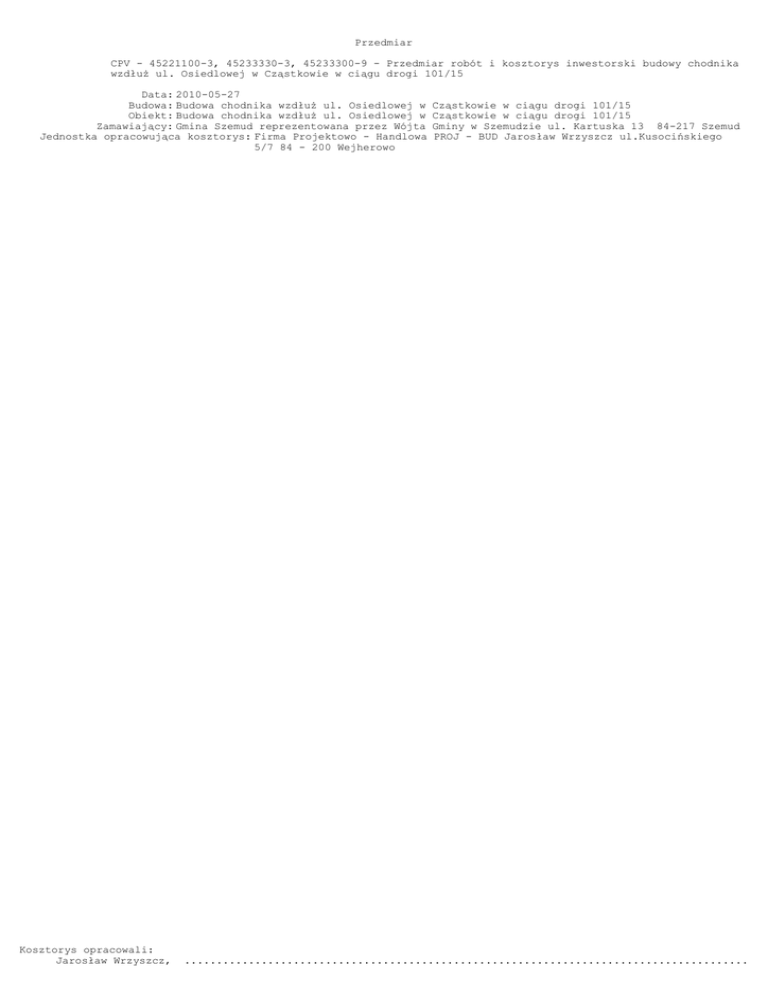 Kosztorys opracowali: Jarosław Wrzyszcz
