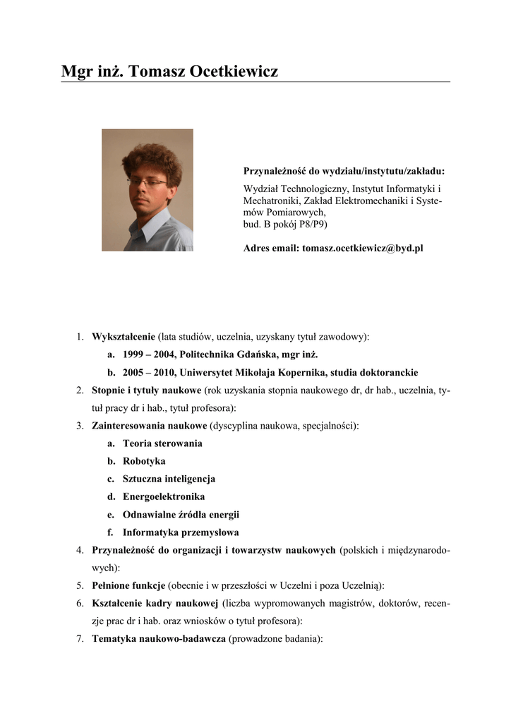 mgr inż. Tomasz Ocetkiewicz - Instytut Informatyki i Mechatroniki