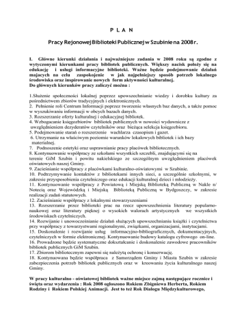 Plan pracy na rok 2008 - Rejonowa Biblioteka Publiczna w Szubinie