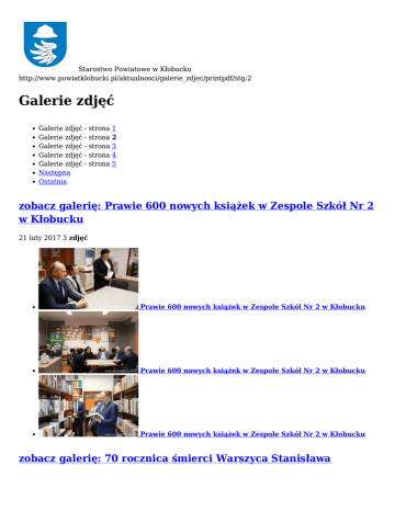 Starostwo Powiatowe w Kłobucku http://www.powiatklobucki.pl/aktualnosci/galerie_zdjec/printpdf/stg:2 Galerie zdjęć Galerie zdjęć - strona 1 Galerie zdjęć - strona 2 Galerie zdjęć - strona 3 Galerie zdjęć - strona 4 Galerie zdjęć - strona 5 Następna Ostatnia zobacz galerię: Prawie 600 nowych książek w Zespole Szkół Nr 2 w Kłobucku 21 luty 2017 3 zdjęć Prawie 600 nowych książek w Zespole Szkół Nr 2 w Kłobucku Prawie 600 nowych książek w Zespole Szkół Nr 2 w Kłobucku Prawie 600 nowych książek w Zespole Szkół Nr 2 w Kłobucku zobacz galerię: 70 rocznica śmierci Warszyca Stanisława Sojczyńskiego 19 luty 2017 2 zdjęć 70 rocznica śmierci Warszyca Stanisława Sojczyńskiego 70 rocznica śmierci Warszyca Stanisława Sojczyńskiego zobacz galerię: Podsumowanie projektu Erasmus Plus kierunek Grecja! 16 luty 2017 4 zdjęć Podsumowanie projektu Erasmus Plus - kierunek Grecja! Podsumowanie projektu Erasmus Plus - kierunek Grecja! Podsumowanie projektu Erasmus Plus - kierunek Grecja! Podsumowanie projektu Erasmus Plus - kierunek Grecja! zobacz galerię: XXII sesja Rady powiatu w Kłobucku 16 luty 2017 5 zdjęć XXII sesja Rady powiatu w Kłobucku XXII sesja Rady powiatu w Kłobucku XXII sesja Rady powiatu w Kłobucku XXII sesja Rady powiatu w Kłobucku zobacz galerię: XIII Grand-Prix Krzepic w tenisie stołowym 15 luty 2017 4 zdjęć XIII Grand-Prix Krzepic w tenisie stołowym XIII Grand-Prix Krzepic w tenisie stołowym XIII Grand-Prix Krzepic w tenisie stołowym XIII Grand-Prix Krzepic w tenisie stołowym zobacz galerię: Oficjalne oddanie do użytku nowego ambulansu w Kłobucku 10 luty 2017 3 zdjęć Oficjalne oddanie do użytku nowego ambulansu w Kłobucku Oficjalne oddanie do użytku nowego ambulansu w Kłobucku Oficjalne oddanie do użytku nowego ambulansu w Kłobucku zobacz galerię: Dni Otwarte na Zamkowej 10 luty 2017 32 zdjęć Dni Otwarte na Zamkowej Dni Otwarte na Zamkowej Dni Otwarte na Zamkowej Dni Otwarte na Zamkowej zobacz galerię: Dni Otwarte w Zespole Szkół w Krzepicach 9 luty 2017 8 zdjęć Dni Otwarte w Zespole Szkół w Krzepicach Dni Otwarte w Zespole Szkół w Krzepicach Dni Otwarte w Zespole Szkół w Krzepicach Dni Otwarte w Zespole Szkół w Krzepicach zobacz galerię: Pierwsze umowy OKO 2017 podpisane 9 luty 2017 2 zdjęć Pierwsze umowy OKO 2017 podpisane Pierwsze umowy OKO 2017 podpisane zobacz galerię: XVI Mistrzostwa Powiatu Kłobuckiego Zrzeszenia Ludowe Zespoły Sportowe w tenisie stołowym 9 luty 2017 3 zdjęć XVI Mistrzostwa Powiatu Kłobuckiego Zrzeszenia Ludowe Zespoły Sportowe w tenisie stołowym XVI Mistrzostwa Powiatu Kłobuckiego Zrzeszenia Ludowe Zespoły Sportowe w tenisie stołowym XVI Mistrzostwa Powiatu Kłobuckiego Zrzeszenia Ludowe Zespoły Sportowe w tenisie stołowym Galerie zdjęć - strona 1 Galerie zdjęć - strona 2 Galerie zdjęć - strona 3 Galerie zdjęć - strona 4 Galerie zdjęć - strona 5 Następna Ostatnia