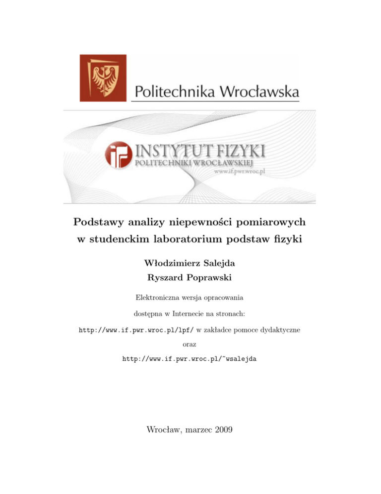 [3] Ryszard Poprawski, Włodzimierz Salejda, Ćwiczenia laboratoryjne z fizyki. Część I.