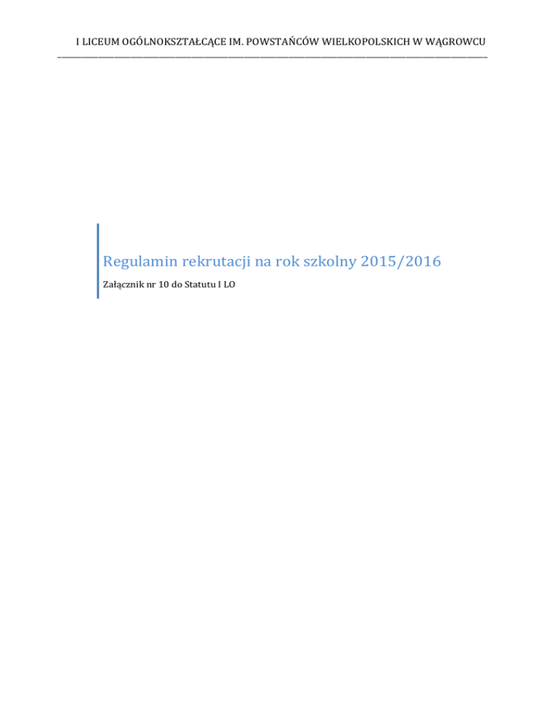 Regulamin rekrutacji - I Liceum Ogólnokształcące im. Powstańców