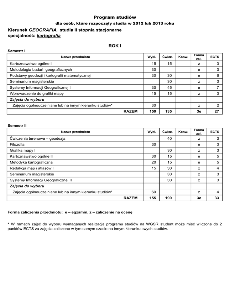 Forma zaliczenia przedmiotu: e – egzamin, z – zaliczenie na ocenę