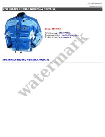Informacje o produkcie Utworzono 07-03-2017 UFO KURTKA ENDURO NIEBIESKA ROZM. XL Cena : 598,00 zł er m ar k Nr katalogowy : GC04277CXL Stan magazynowy : poniżej średniego Średnia ocena : brak recenzji w at UFO KURTKA ENDURO NIEBIESKA ROZM. XL